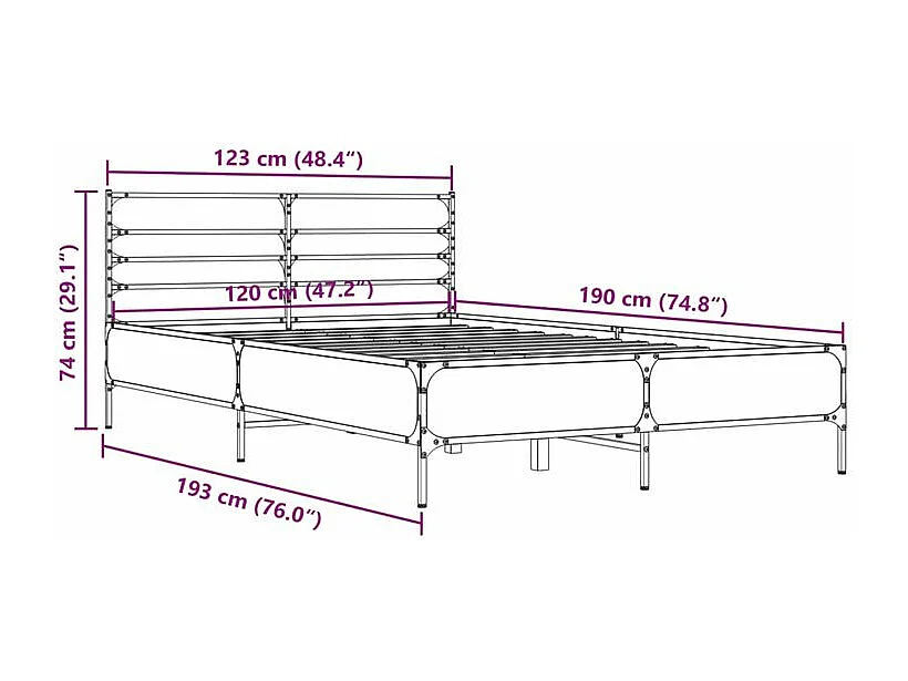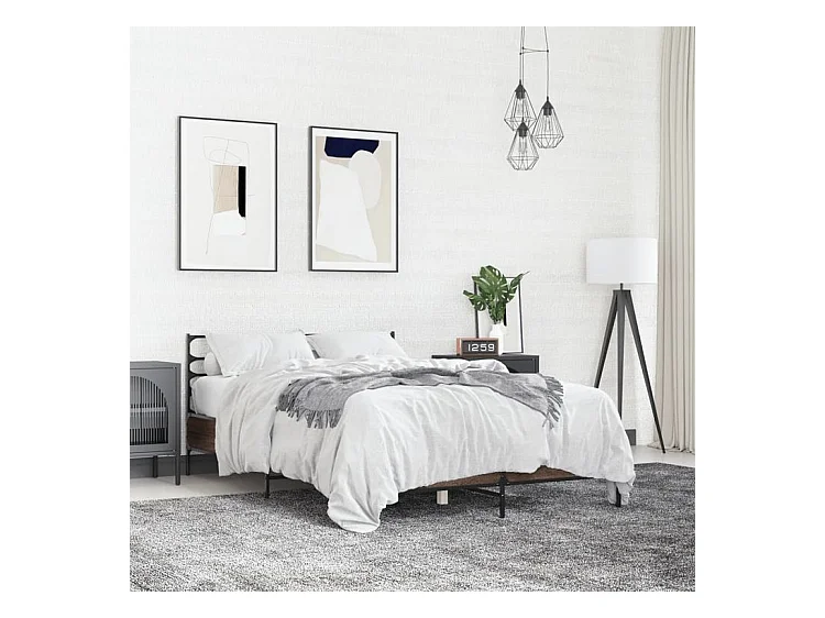 Cadre de lit chêne marron 120x190 bois d'ingénierie et métal