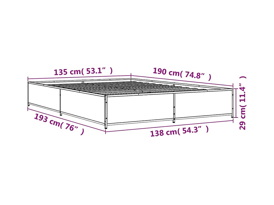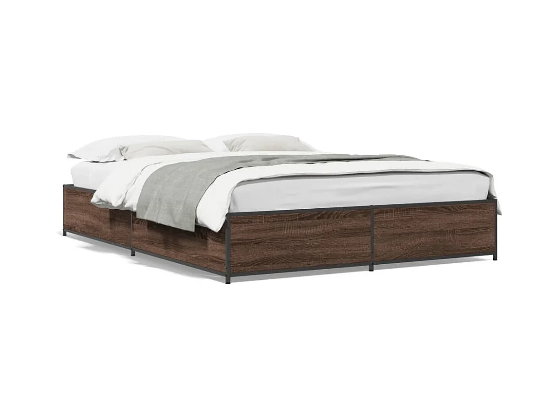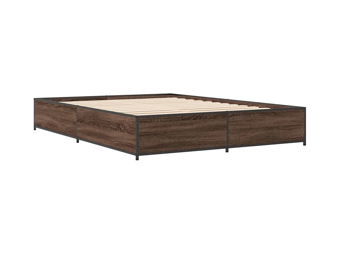 Cadre de lit chêne marron 135x190 bois d'ingénierie et métal