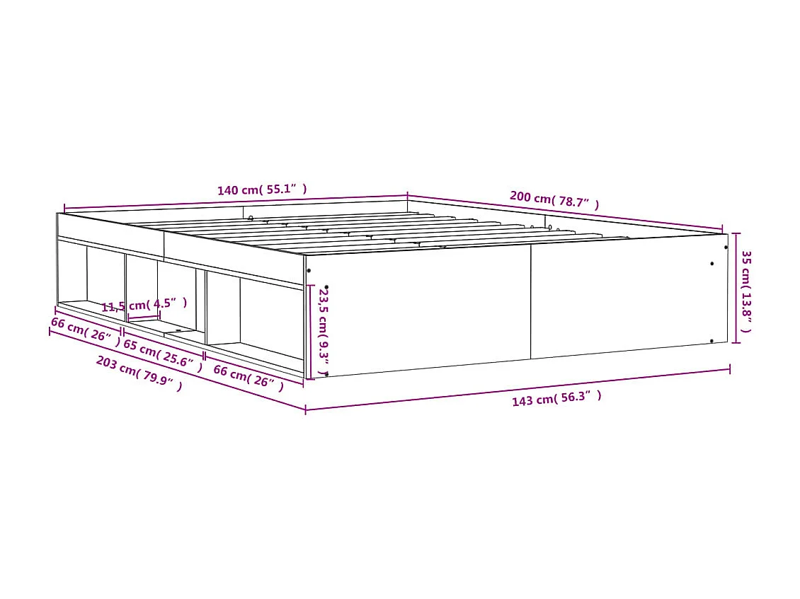 Cadre de lit chêne marron 140x200 cm