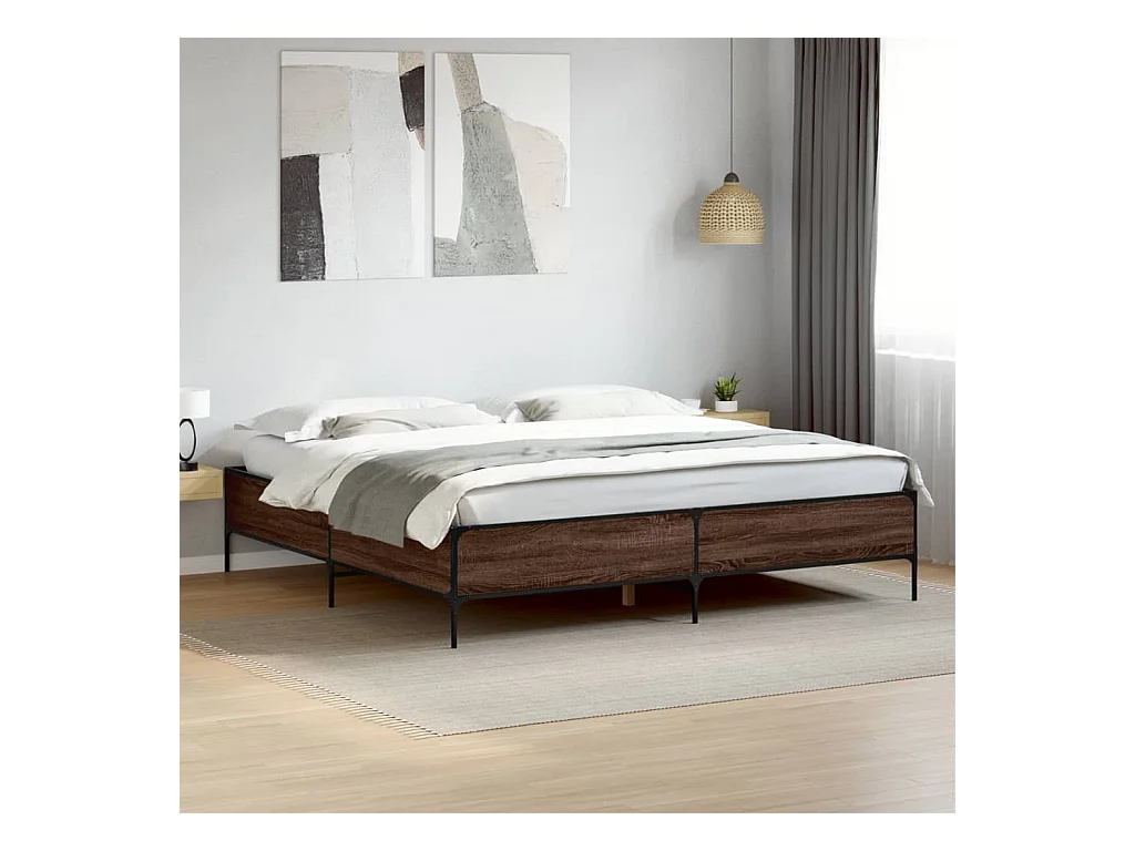 Cadre de lit chêne marron 180x200 bois d'ingénierie et métal
