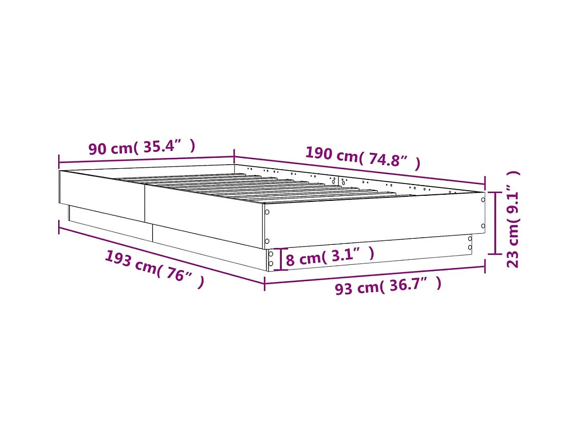 Cadre de lit chêne marron 90x190 bois d'ingénierie