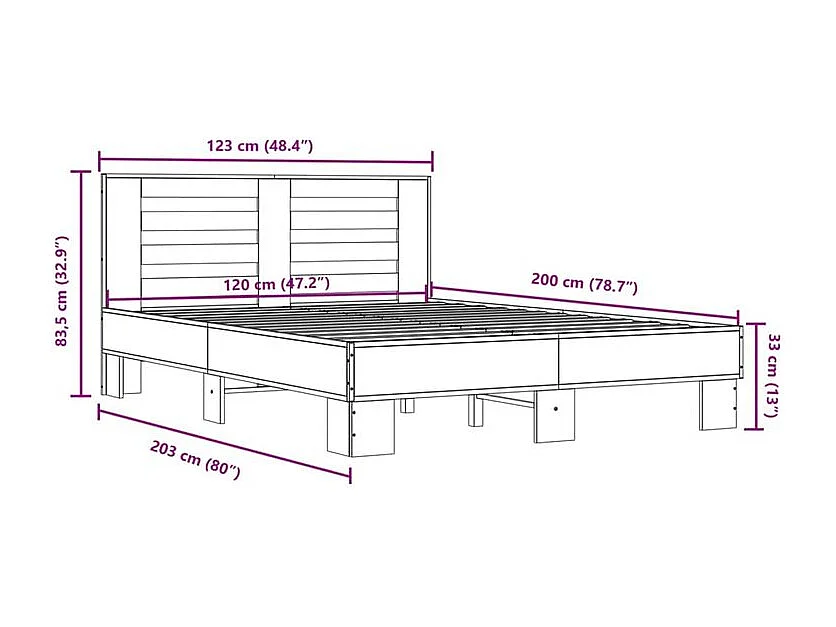 Cadre de lit chêne sonoma 120x200 bois d'ingénierie et métal