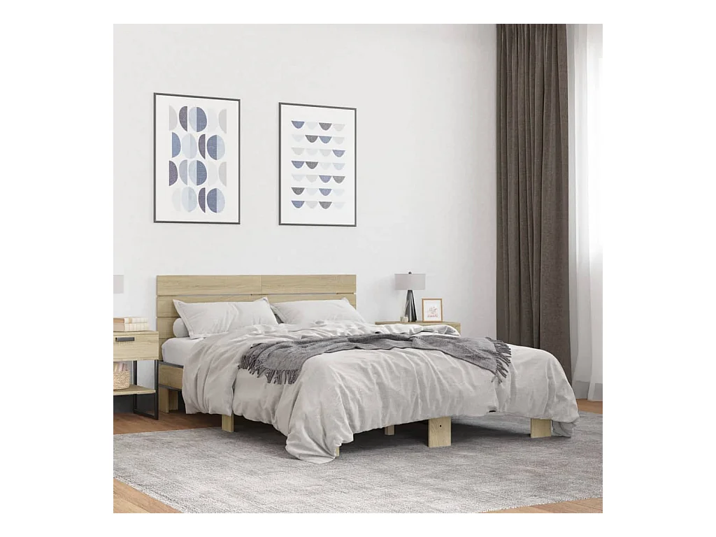 Cadre de lit chêne sonoma 140x200 bois d'ingénierie et métal