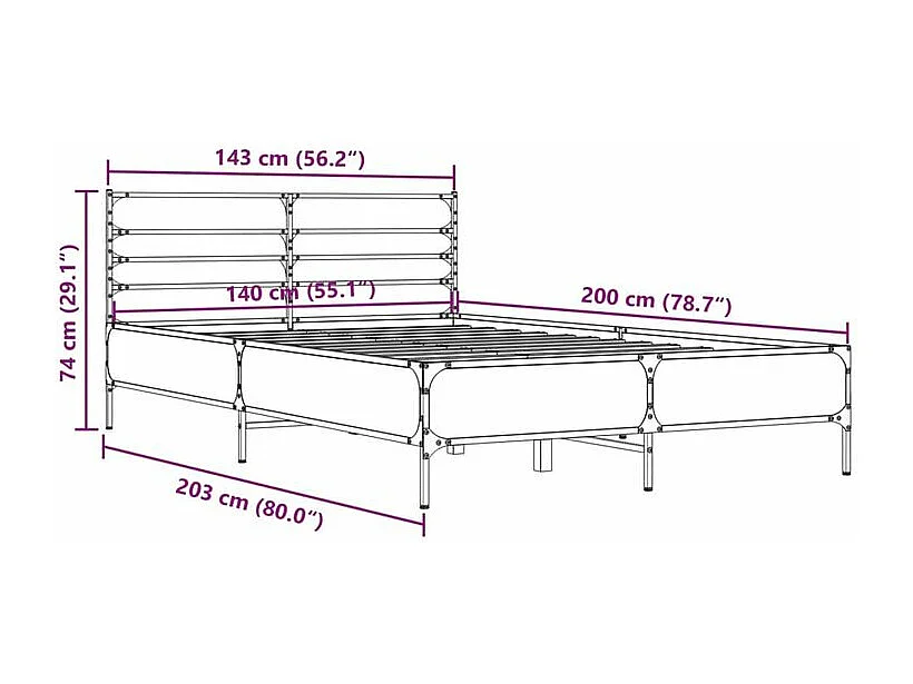 Cadre de lit chêne sonoma 140x200 bois d'ingénierie et métal