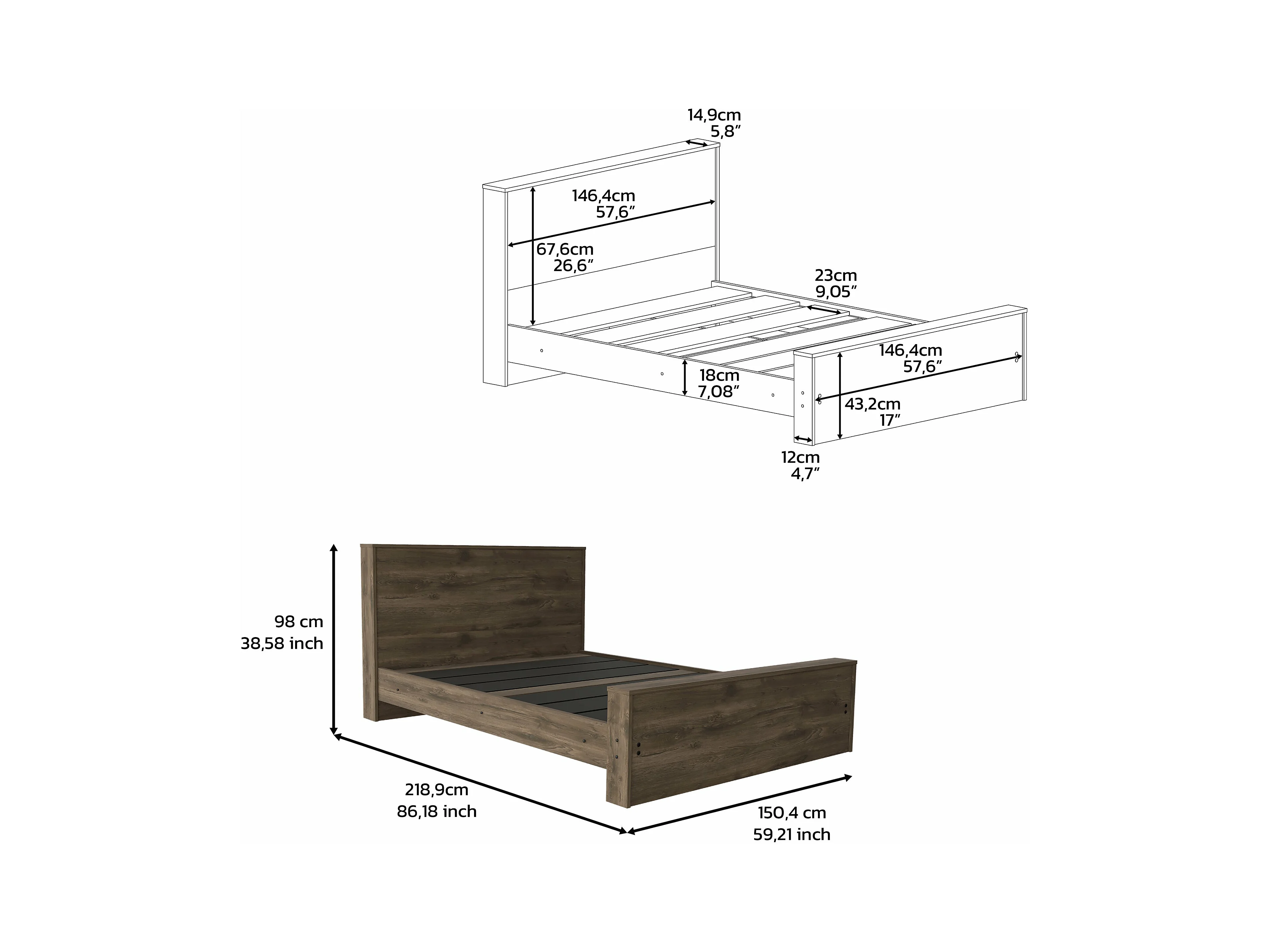 Cadre de lit complet, 150,4 cm L x 218,9 cm P x 98 cm A, Le noyer