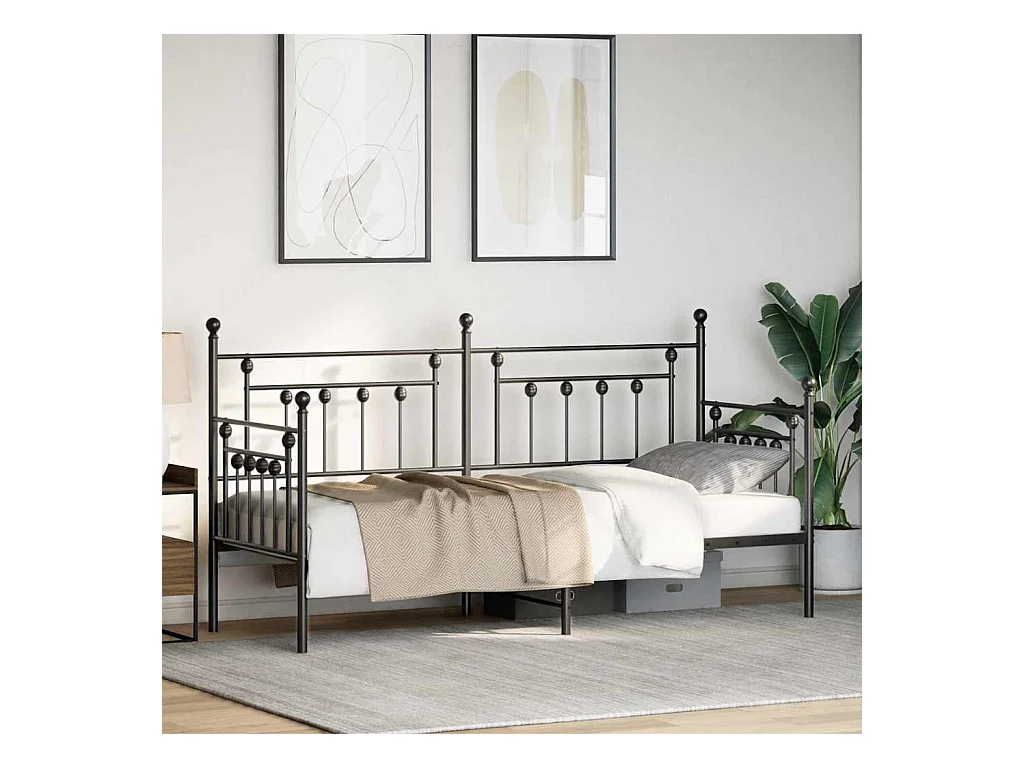 Cadre de lit de jour avec tête de lit Noir 107 x 203 cm Acier
