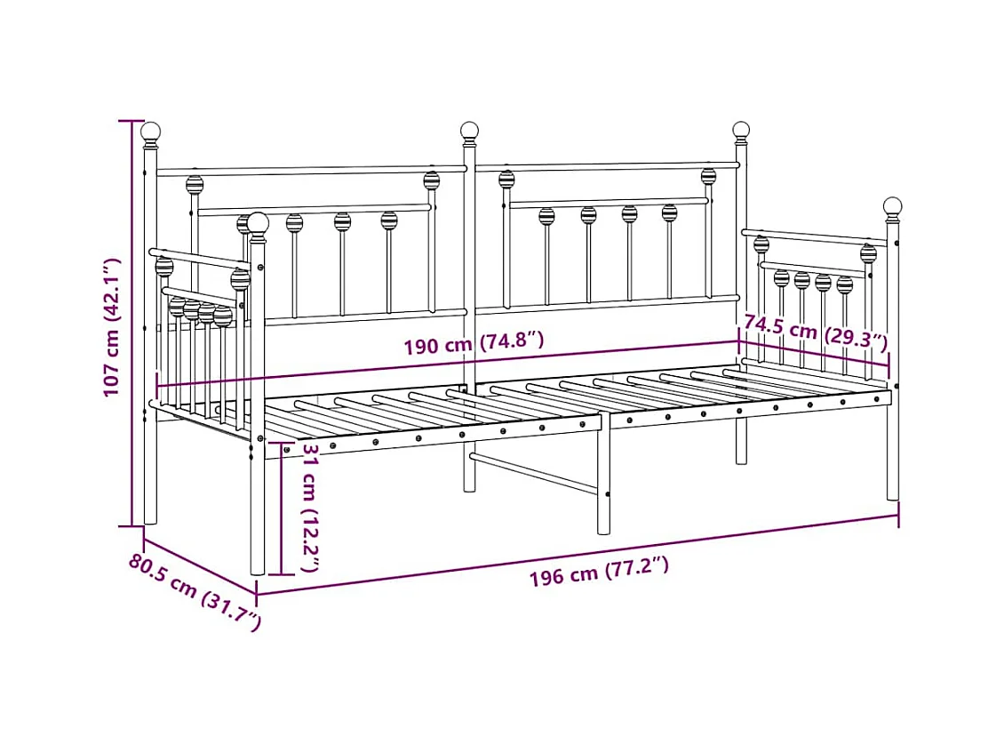 Cadre de lit de jour avec tête de lit Noir 75 x 190 cm Acier