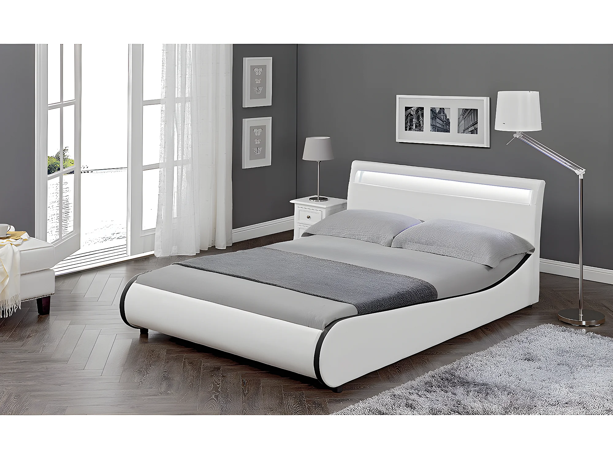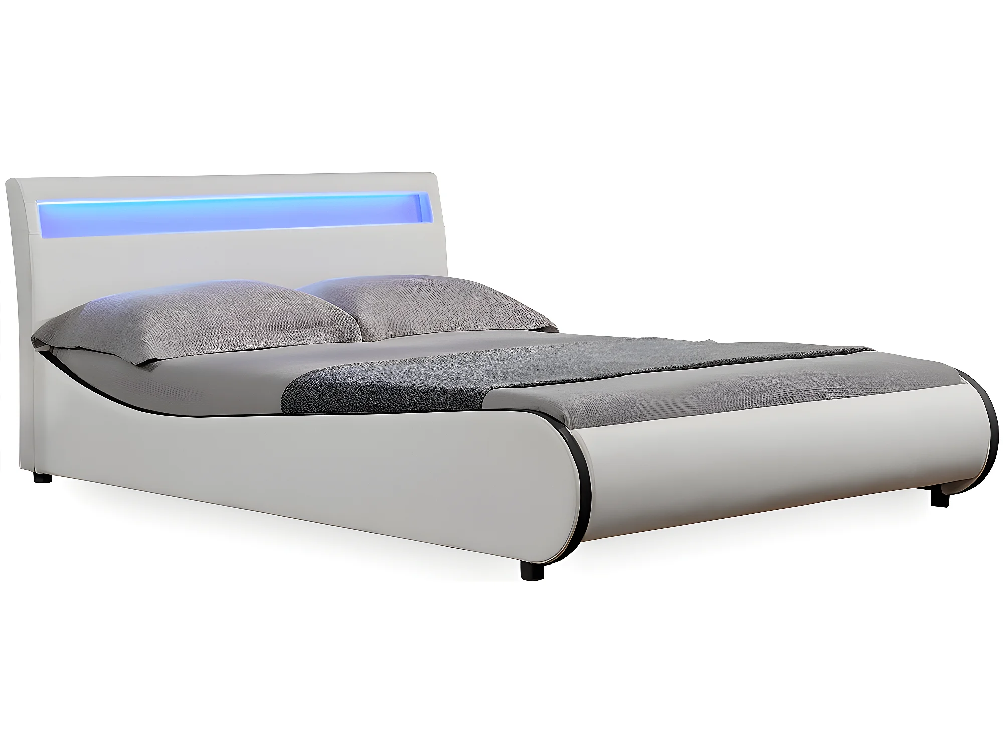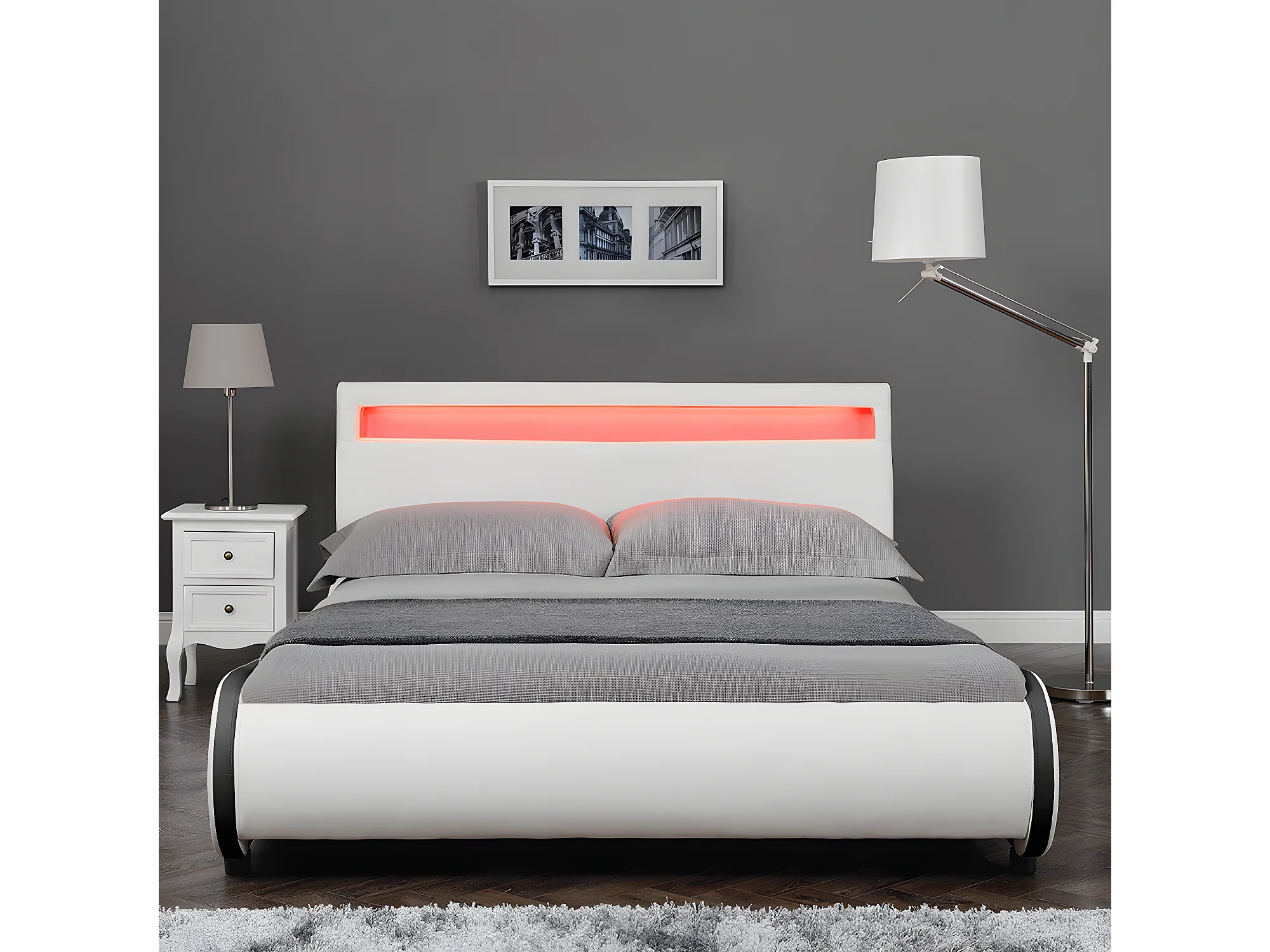 Cadre de Lit Double Valencia à LED 140 x 200 cm Simili avec Sommier à Lattes Blanc Corium