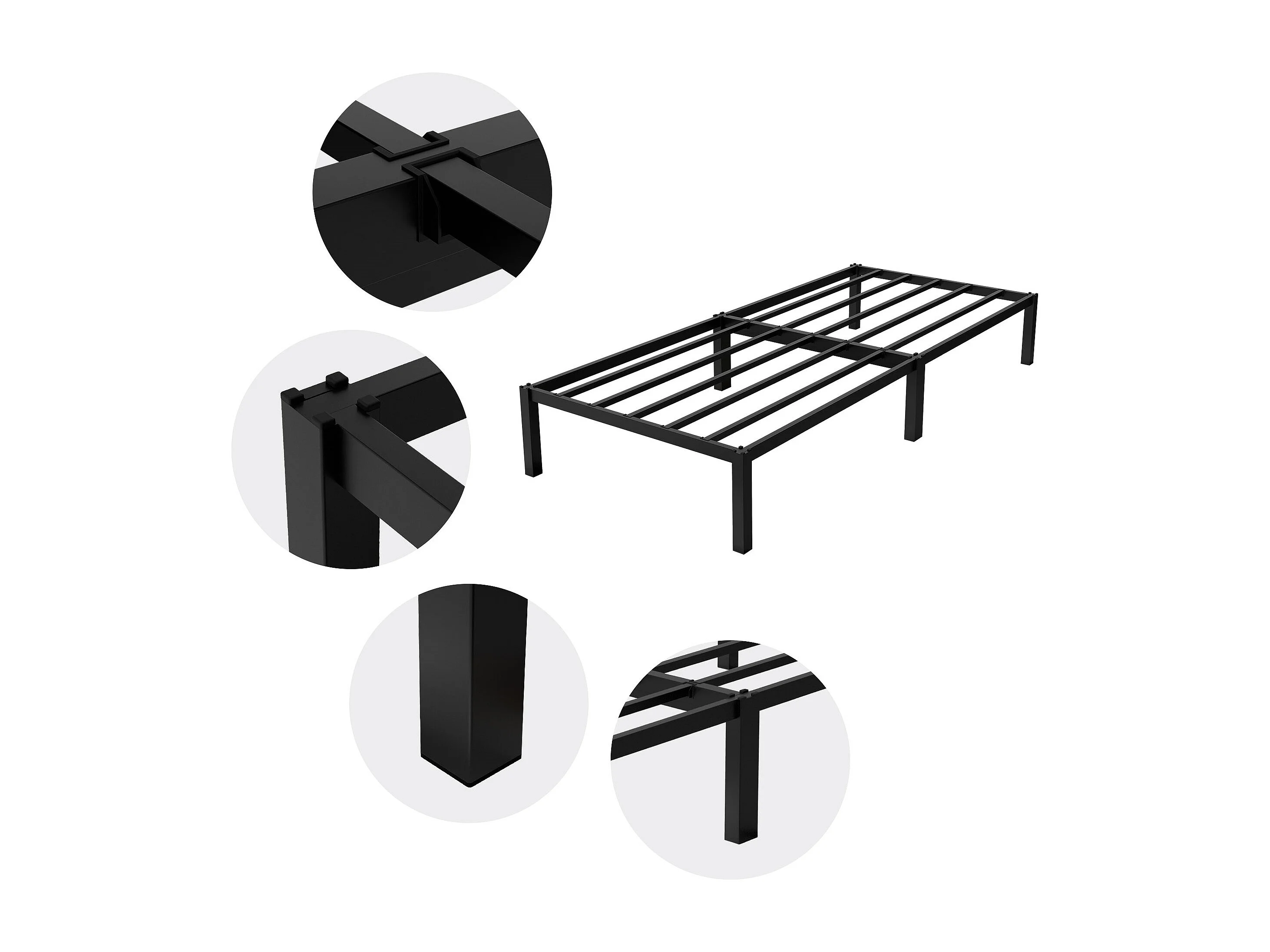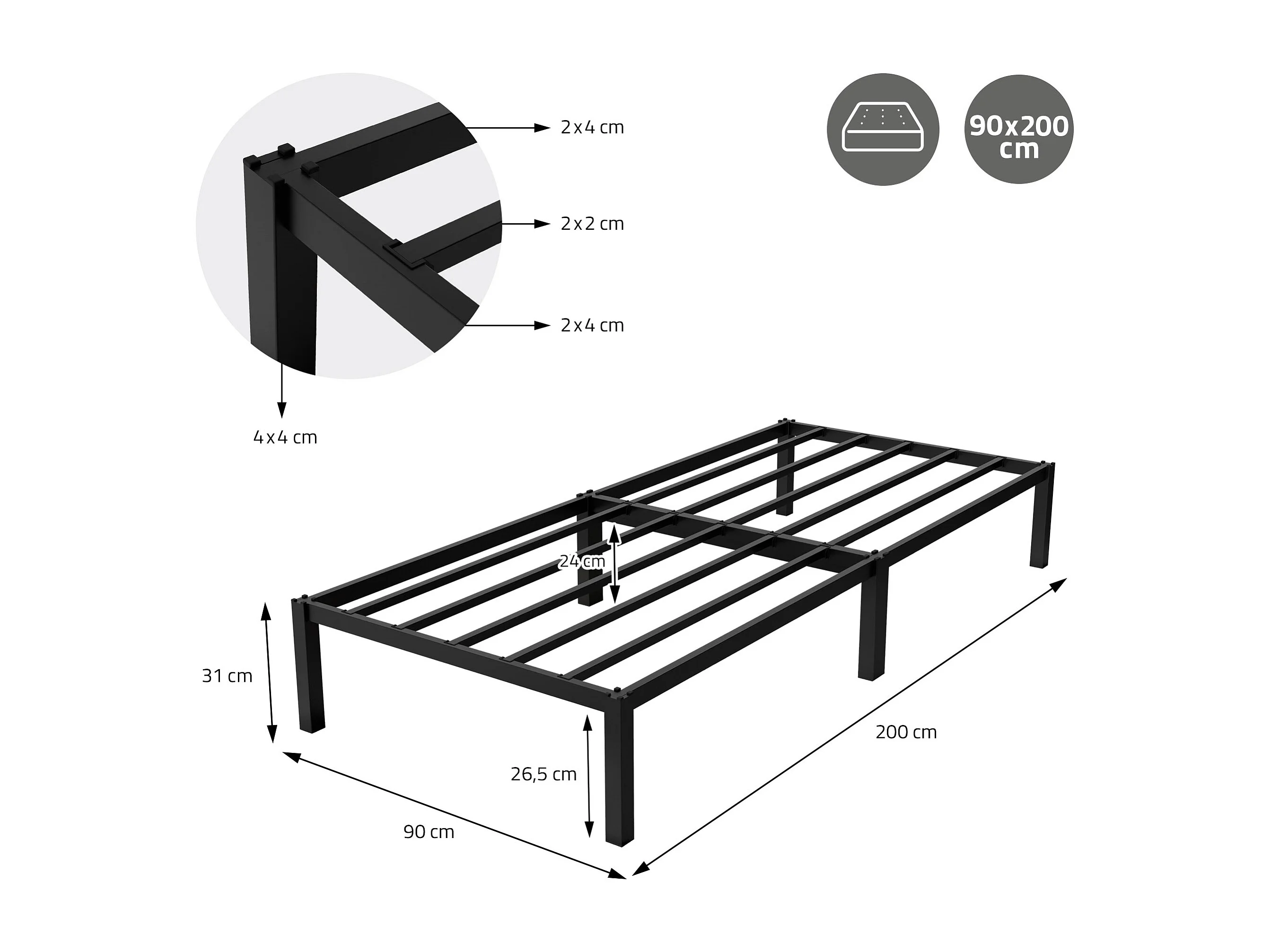 Cadre de lit en acier sommier à lattes noir moderne chambre à coucher 90x200 cm
