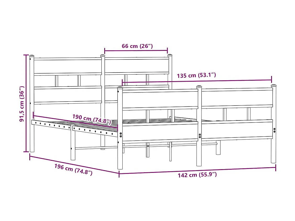 Cadre de lit en métal sans matelas chêne fumé 135x190 cm