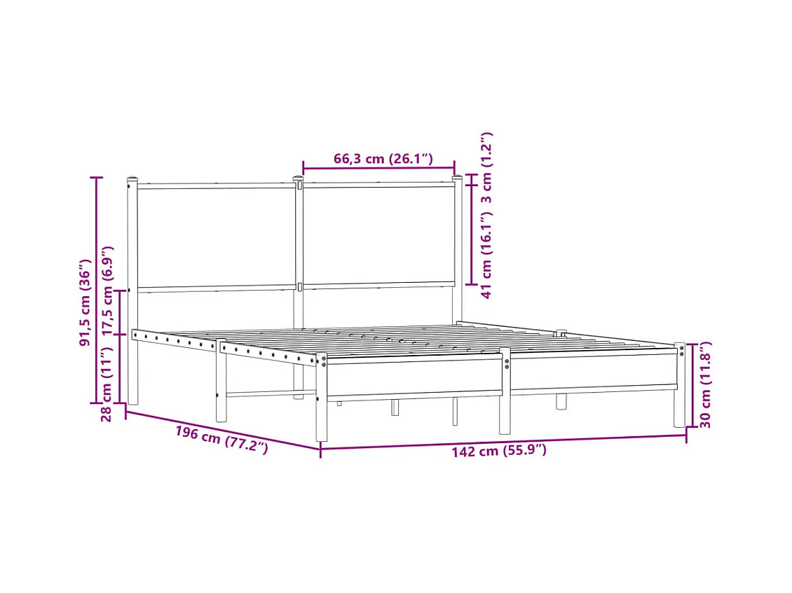 Cadre de lit en métal sans matelas chêne fumé 137x190 cm