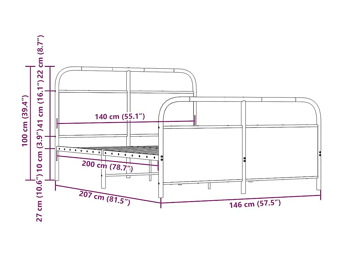 Cadre de lit en métal sans matelas chêne fumé 140x200 cm