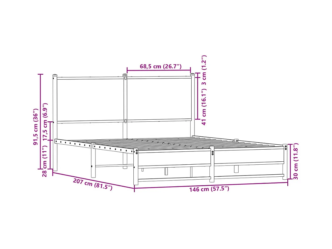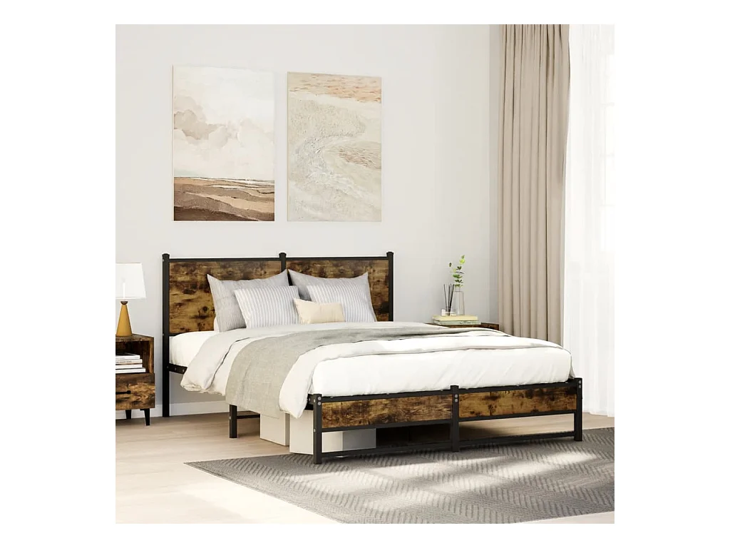 Cadre de lit en métal sans matelas chêne fumé 140x200 cm