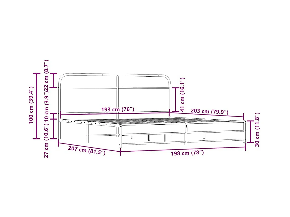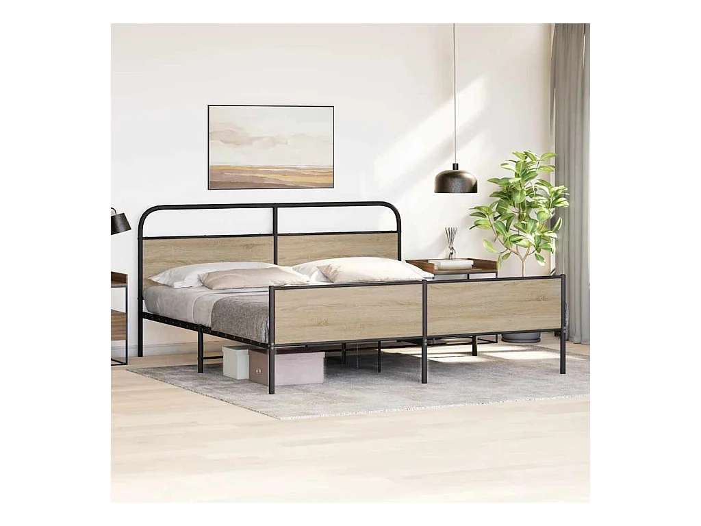 Cadre de lit en métal sans matelas chêne fumé 193x203 cm