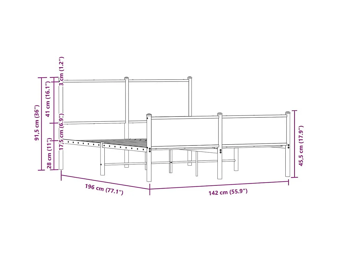Cadre de lit en métal sans matelas chêne fumé 137x190 cm