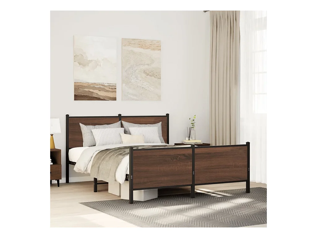 Cadre de lit en métal sans matelas chêne marron 150x200 cm
