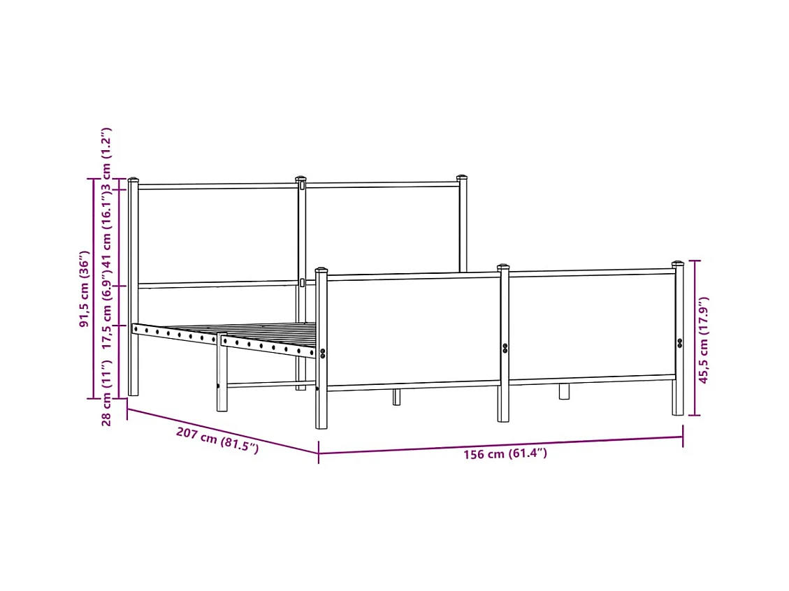 Cadre de lit en métal sans matelas chêne marron 150x200 cm