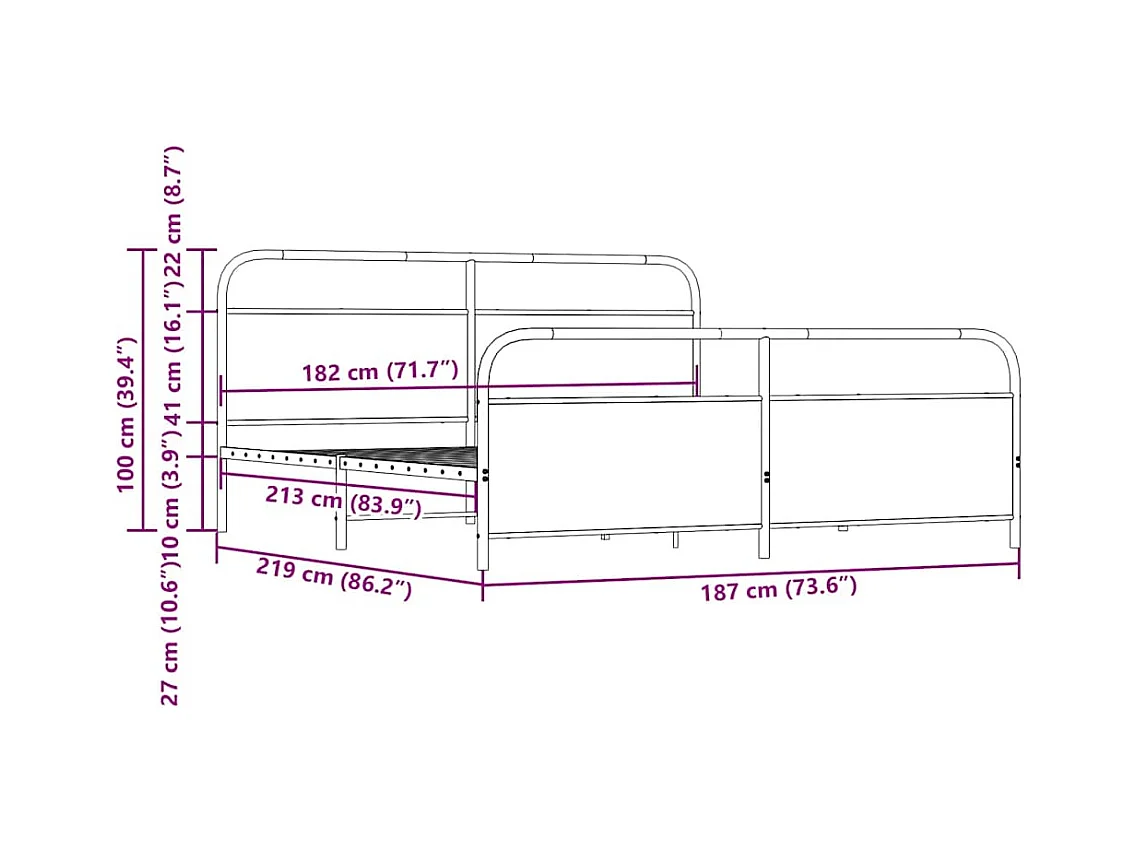 Cadre de lit en métal sans matelas chêne marron 183x213 cm