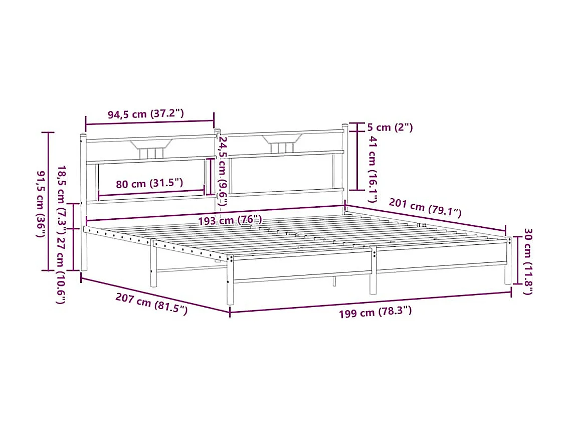 Cadre de lit en métal sans matelas chêne fumé 193x203 cm
