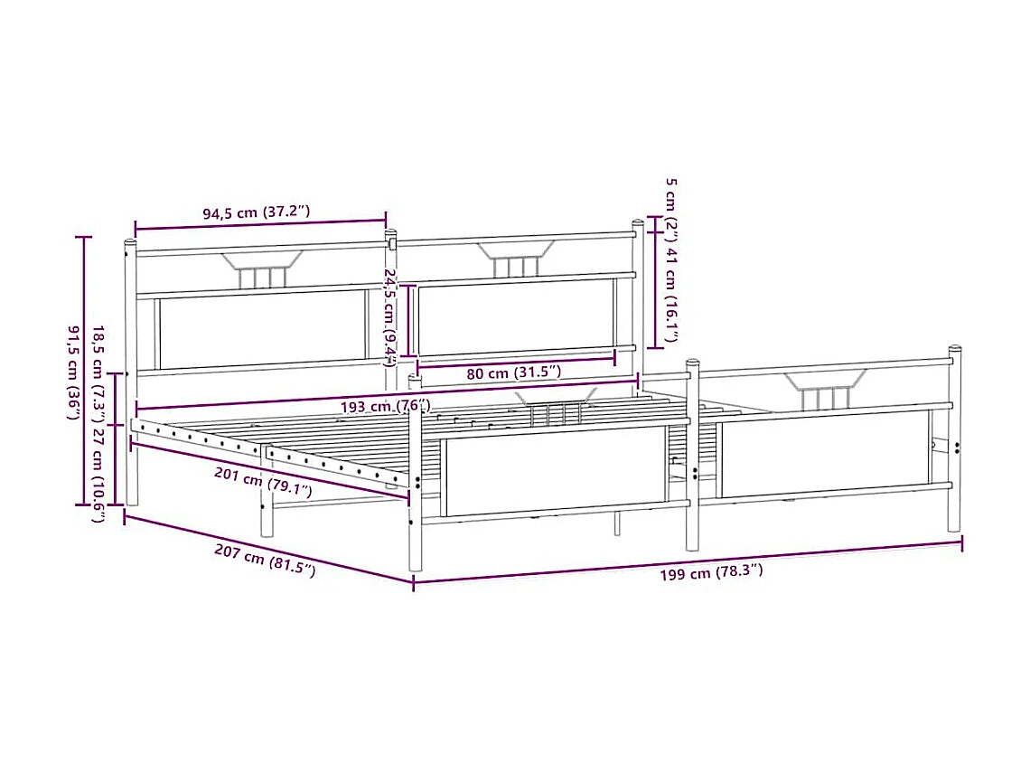 Cadre de lit en métal sans matelas chêne fumé 193x203 cm