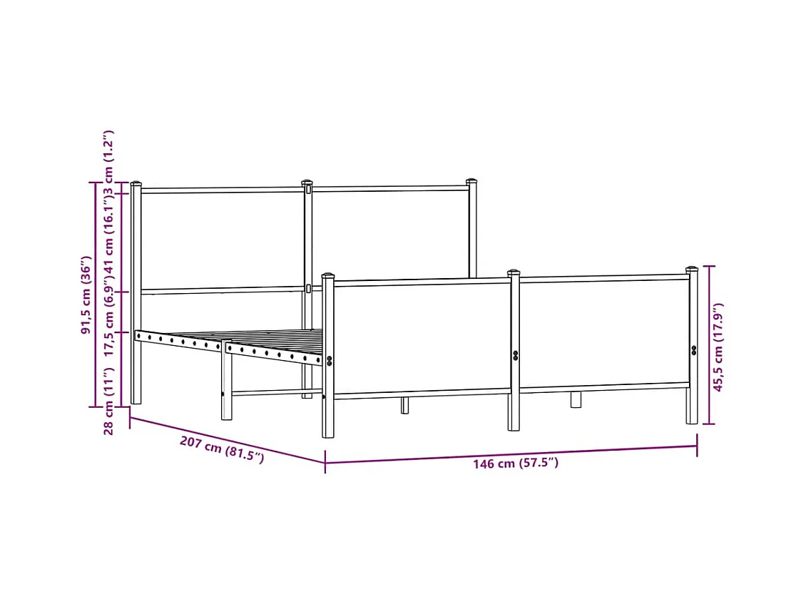 Cadre de lit en métal sans matelas chêne fumé 140x200 cm
