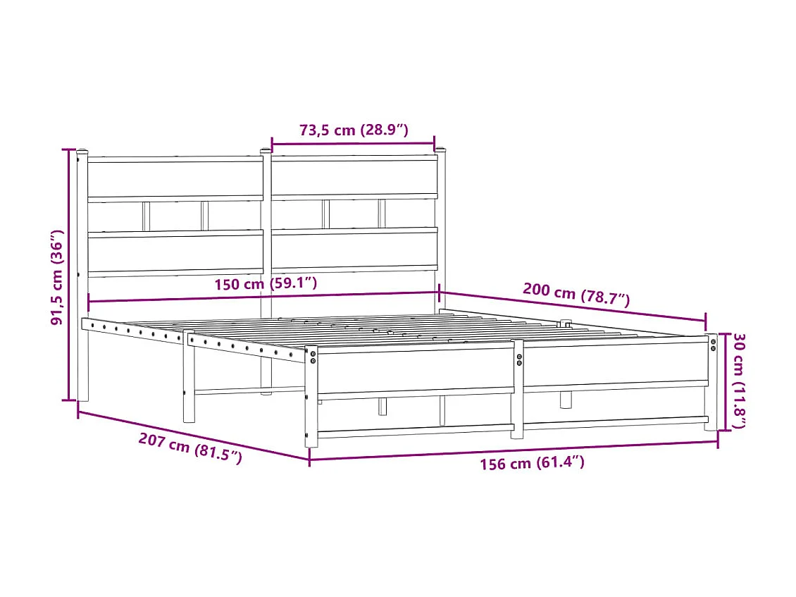 Cadre de lit en métal sans matelas chêne sonoma 150x200 cm