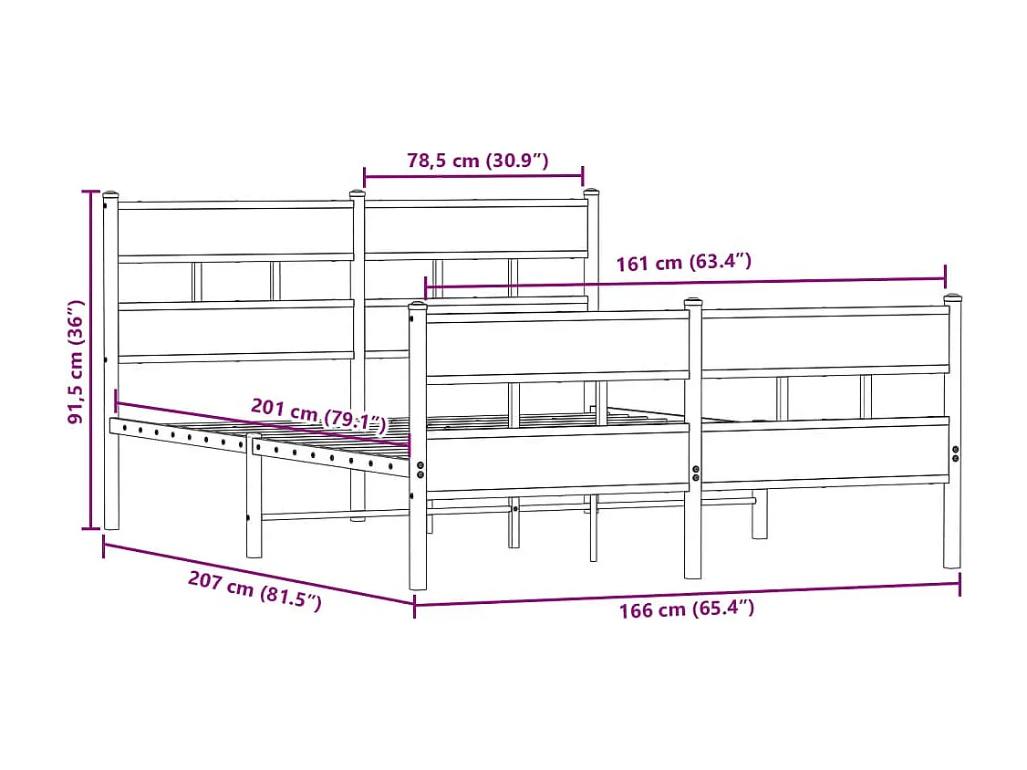 Cadre de lit en métal sans matelas chêne sonoma 160x200 cm