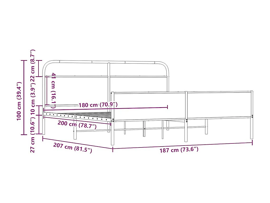 Cadre de lit en métal sans matelas chêne fumé 180x200 cm