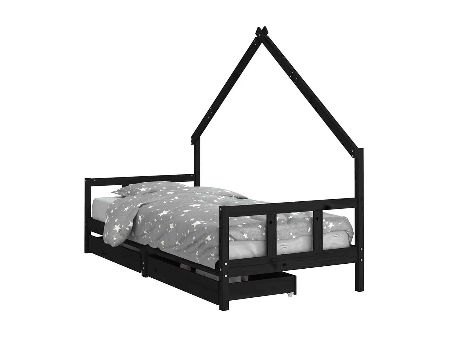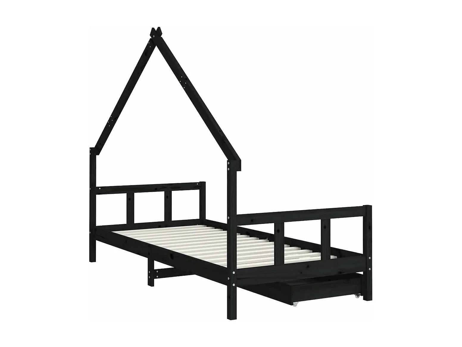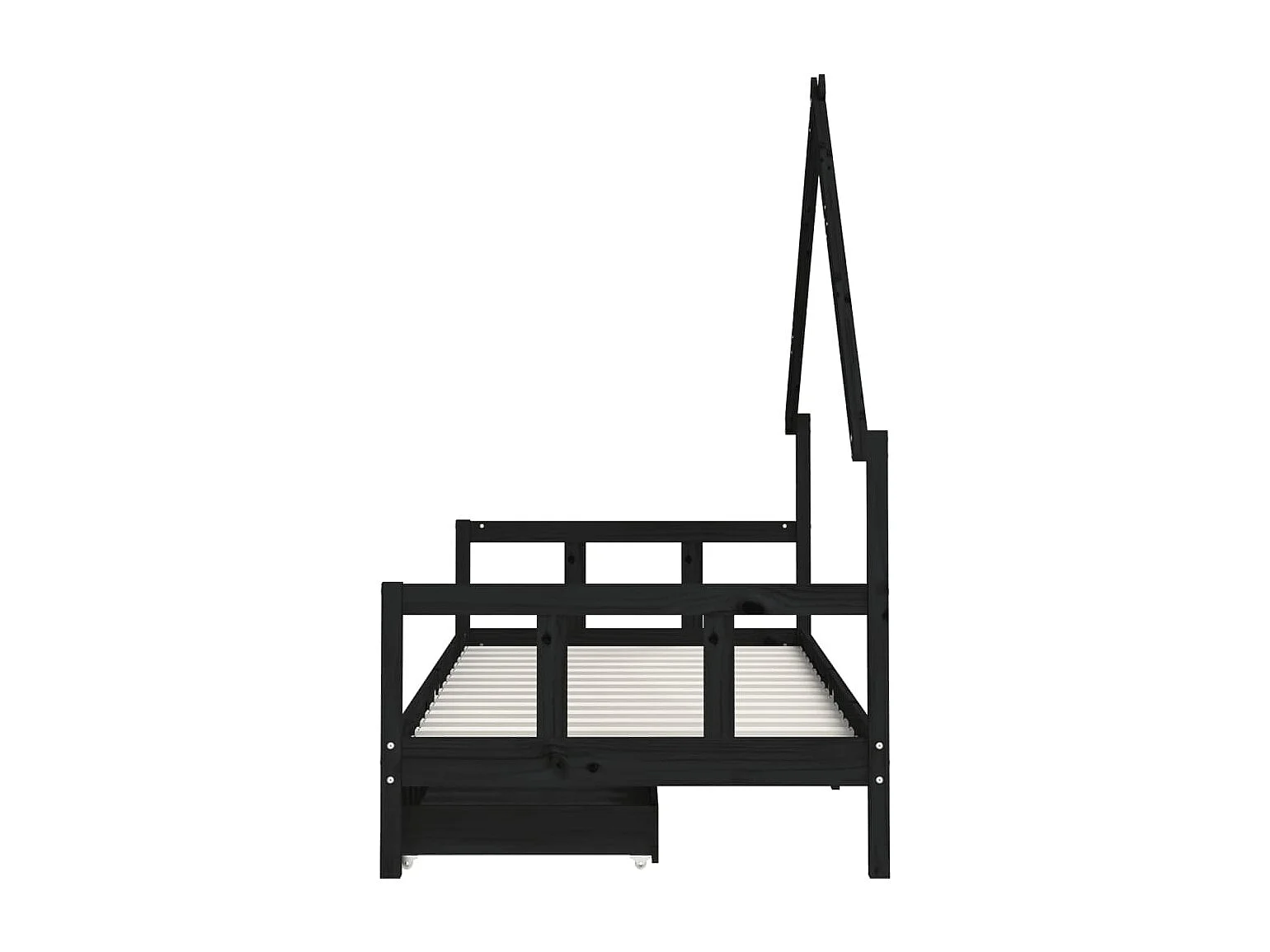 Cadre de lit enfant avec tiroirs noir 90x200 bois pin massif