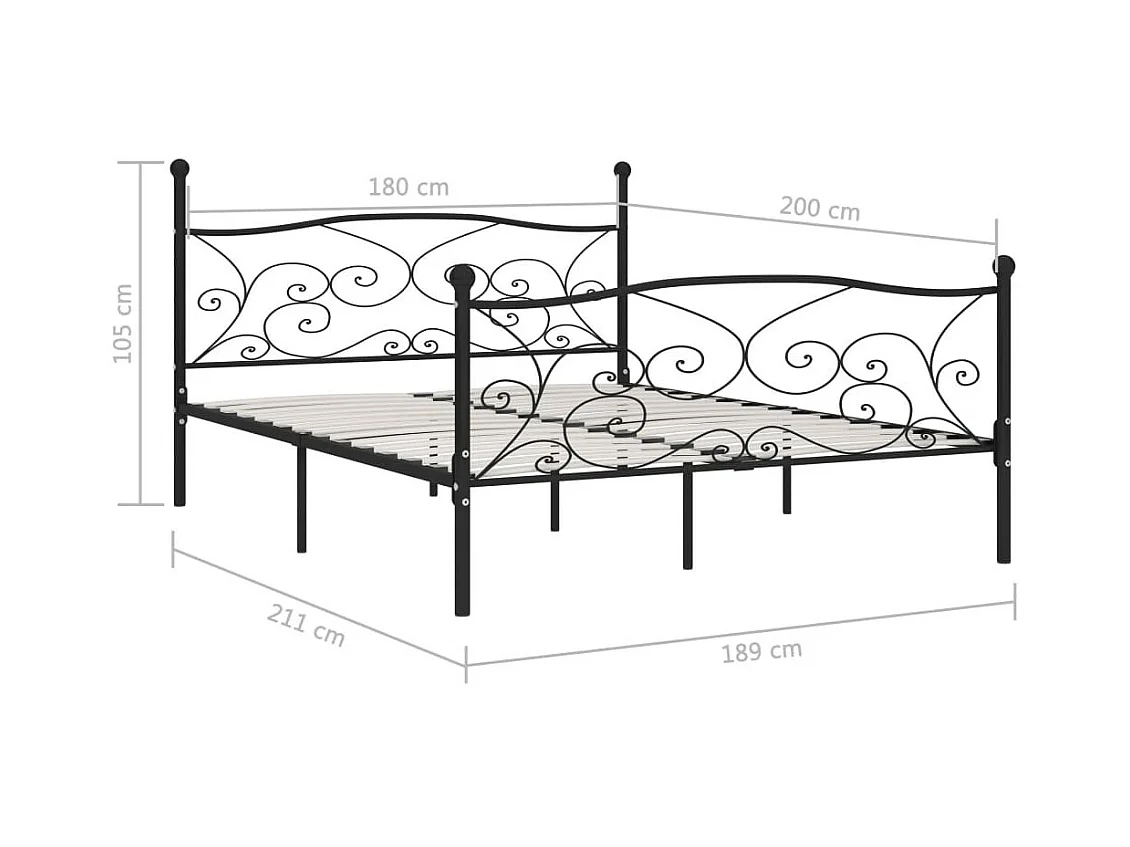 Lit et sommier à lattes Noir Métal 180x200