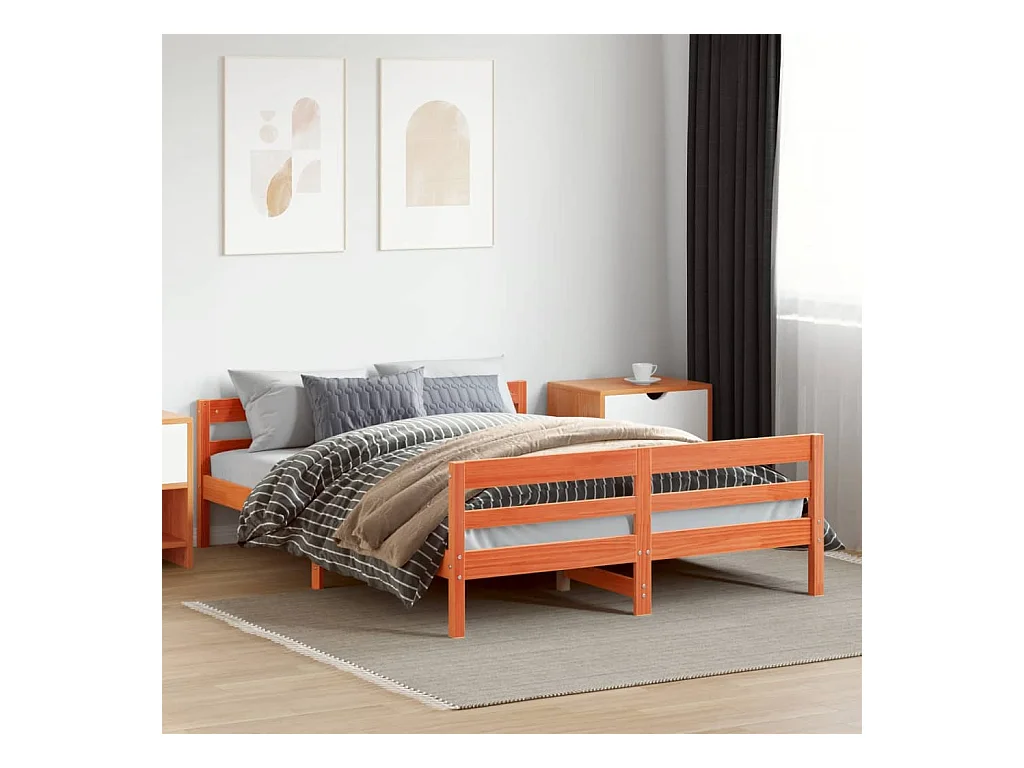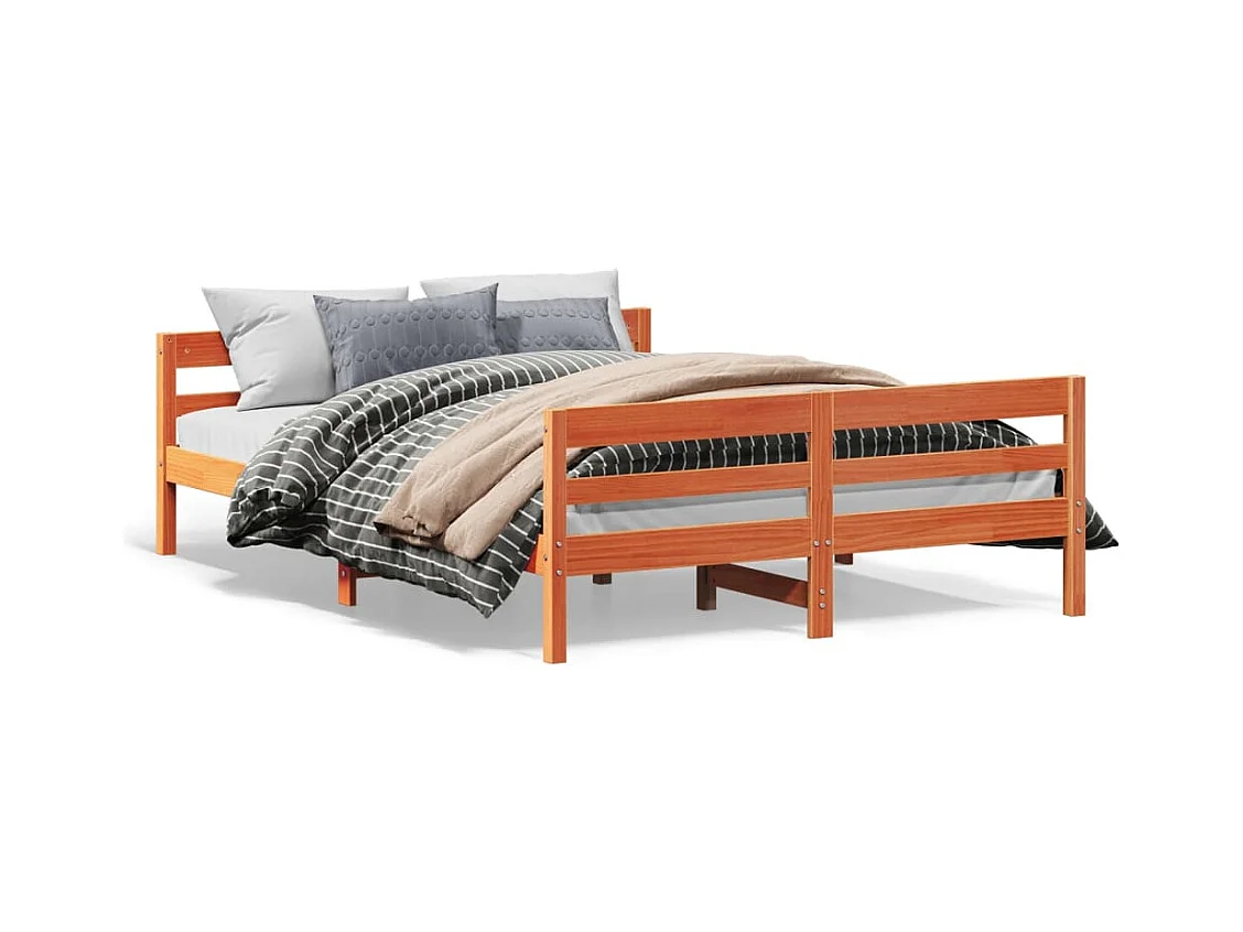 Cadre de lit et tête de lit cire marron 120x200 bois de pin
