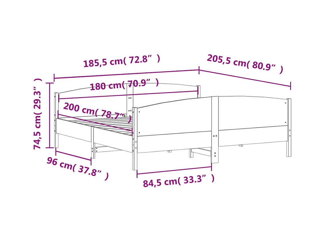 Cadre de lit et tête de lit marron 180x200 bois de pin