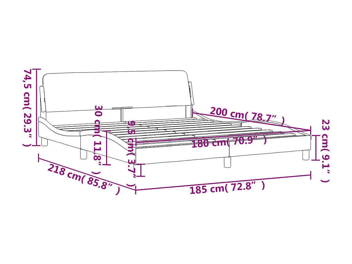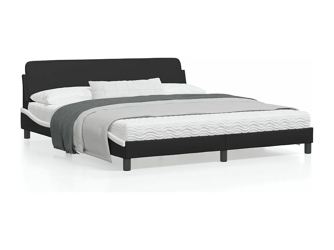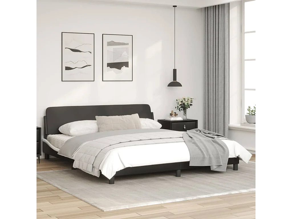 Cadre de lit et tête de lit noir et blanc 180x200 similicuir