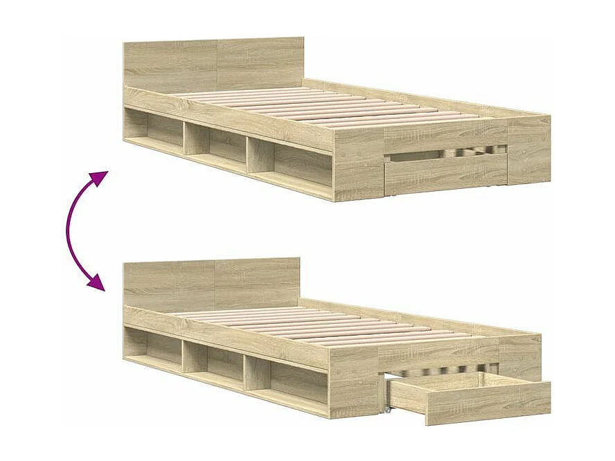 Cadre de lit et tiroir chêne sonoma 75x190 bois d'ingénierie