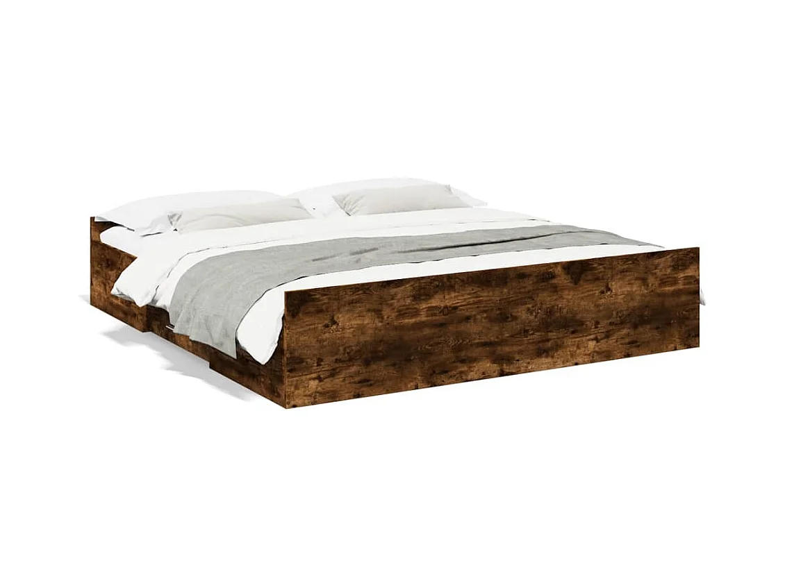 Cadre de lit et tiroirs chêne fumé 200x200 cm bois d'ingénierie