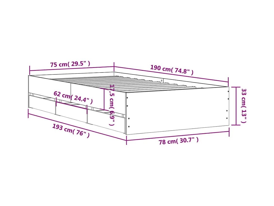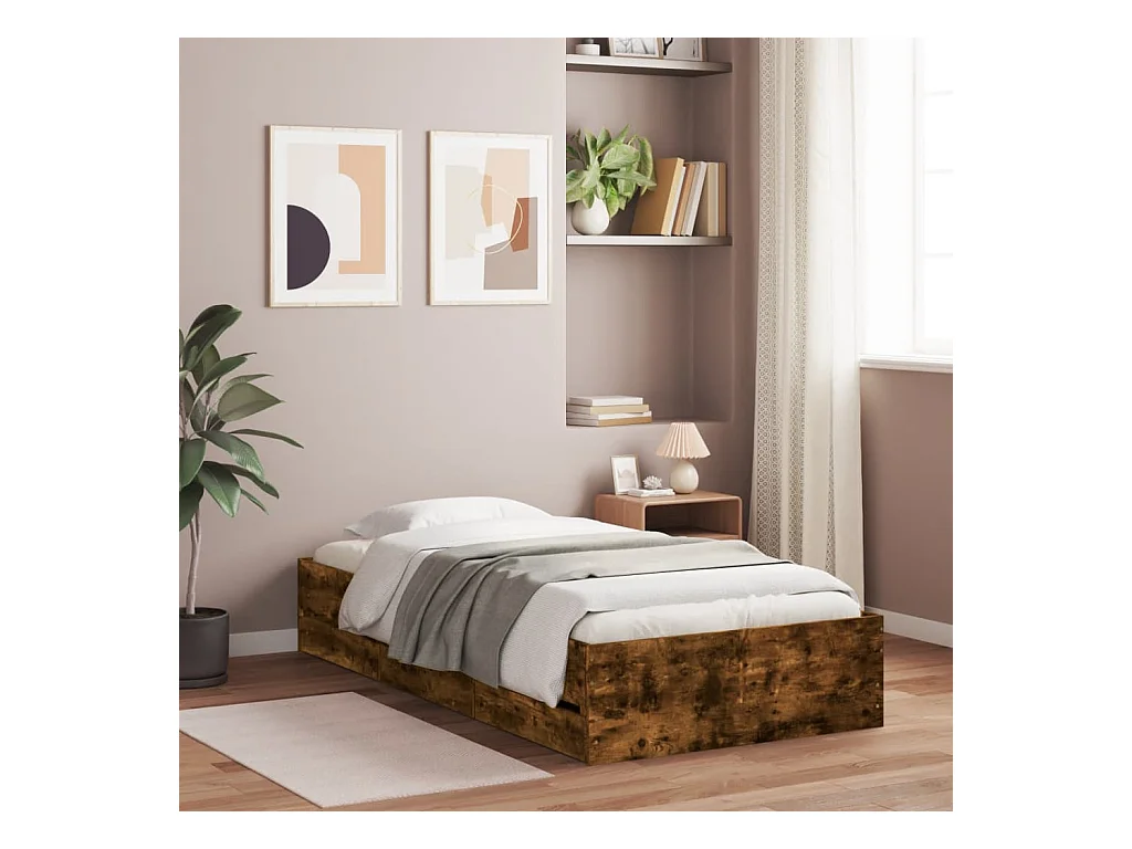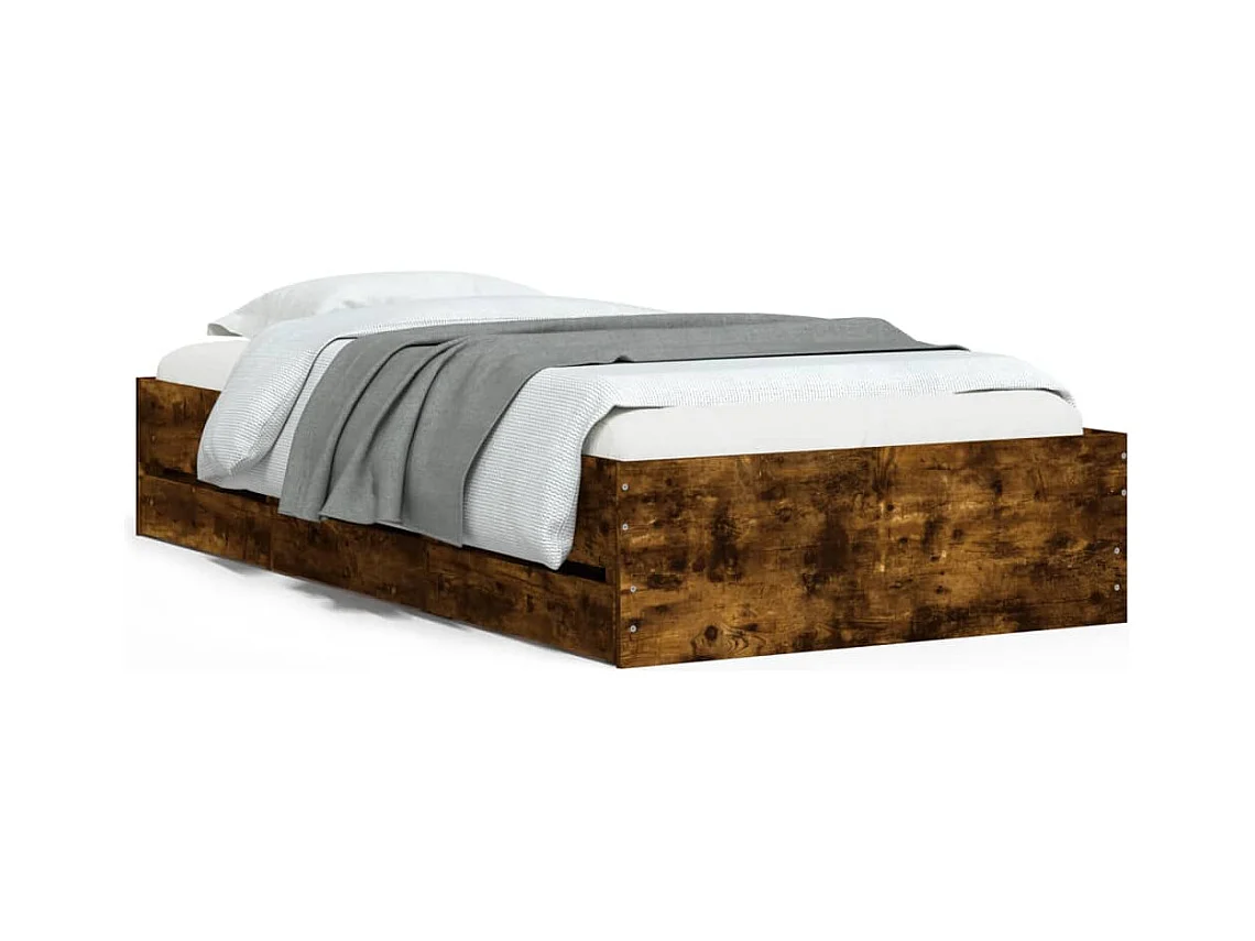 Cadre de lit et tiroirs chêne fumé 75x190 bois d'ingénierie