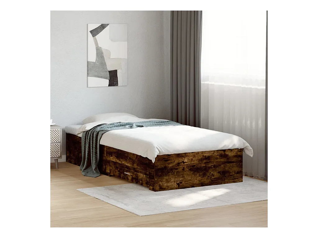 Cadre de lit et tiroirs chêne fumé 90x200 bois d'ingénierie