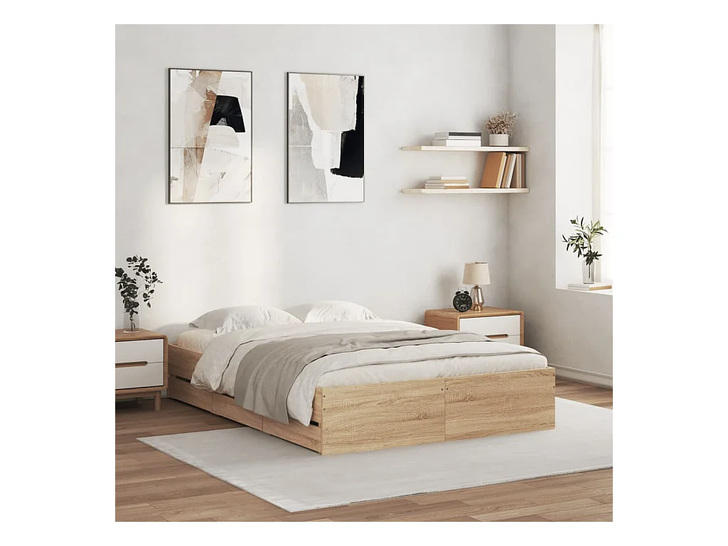 Cadre de lit et tiroirs chêne sonoma 120x200 bois ingénierie