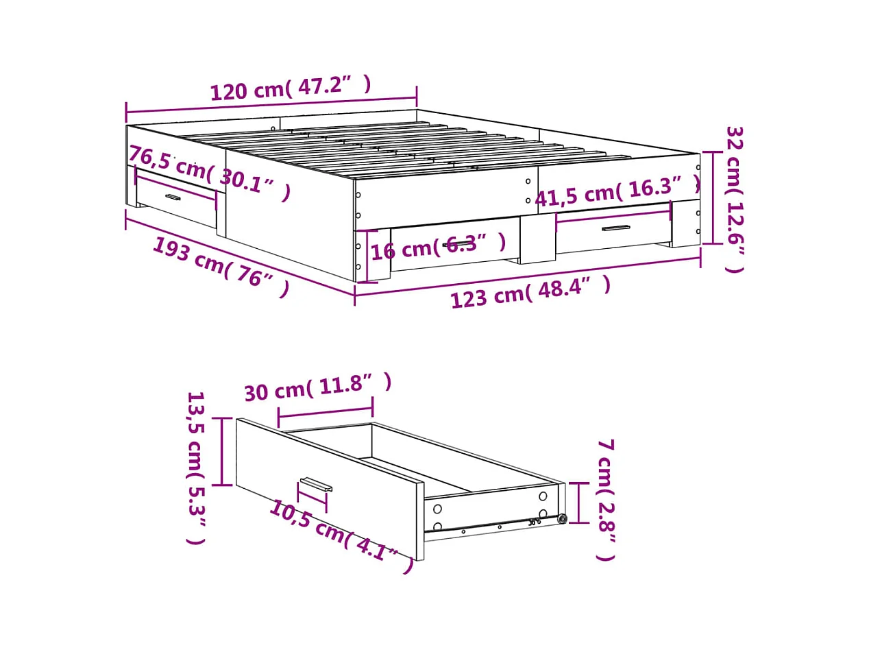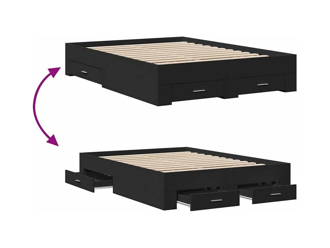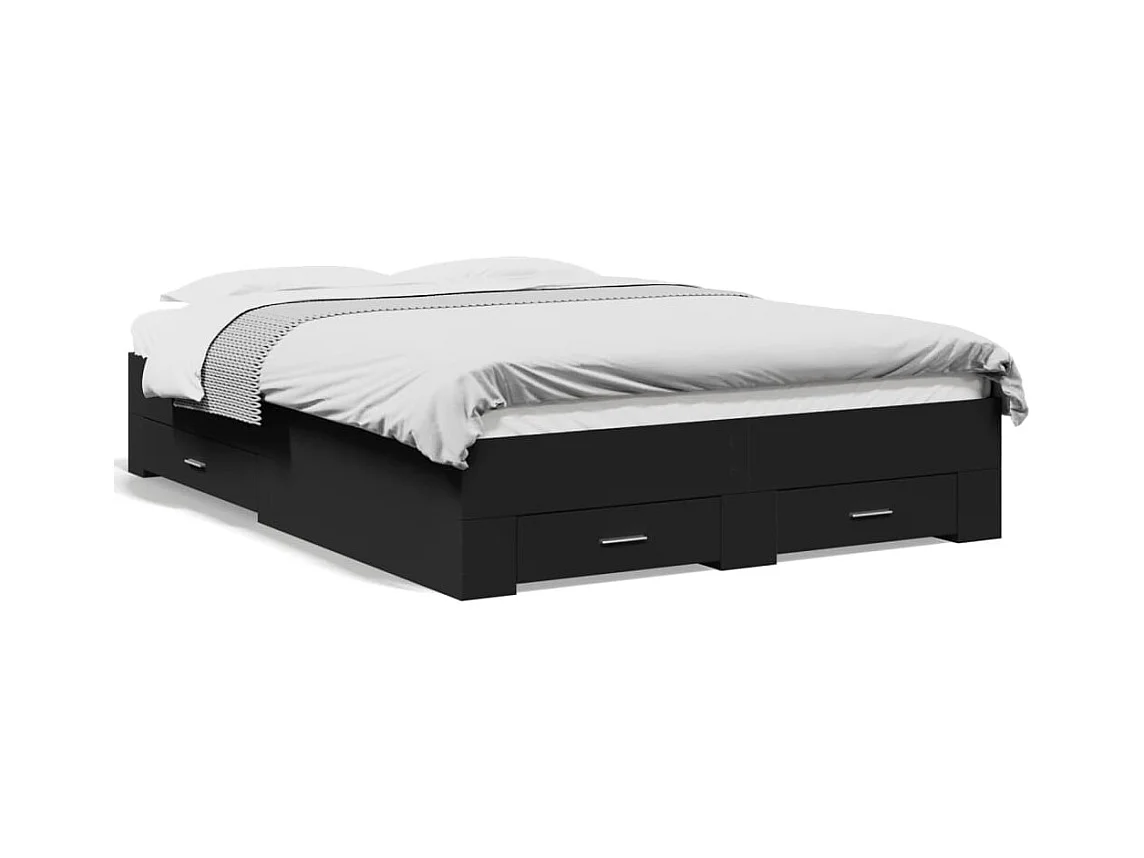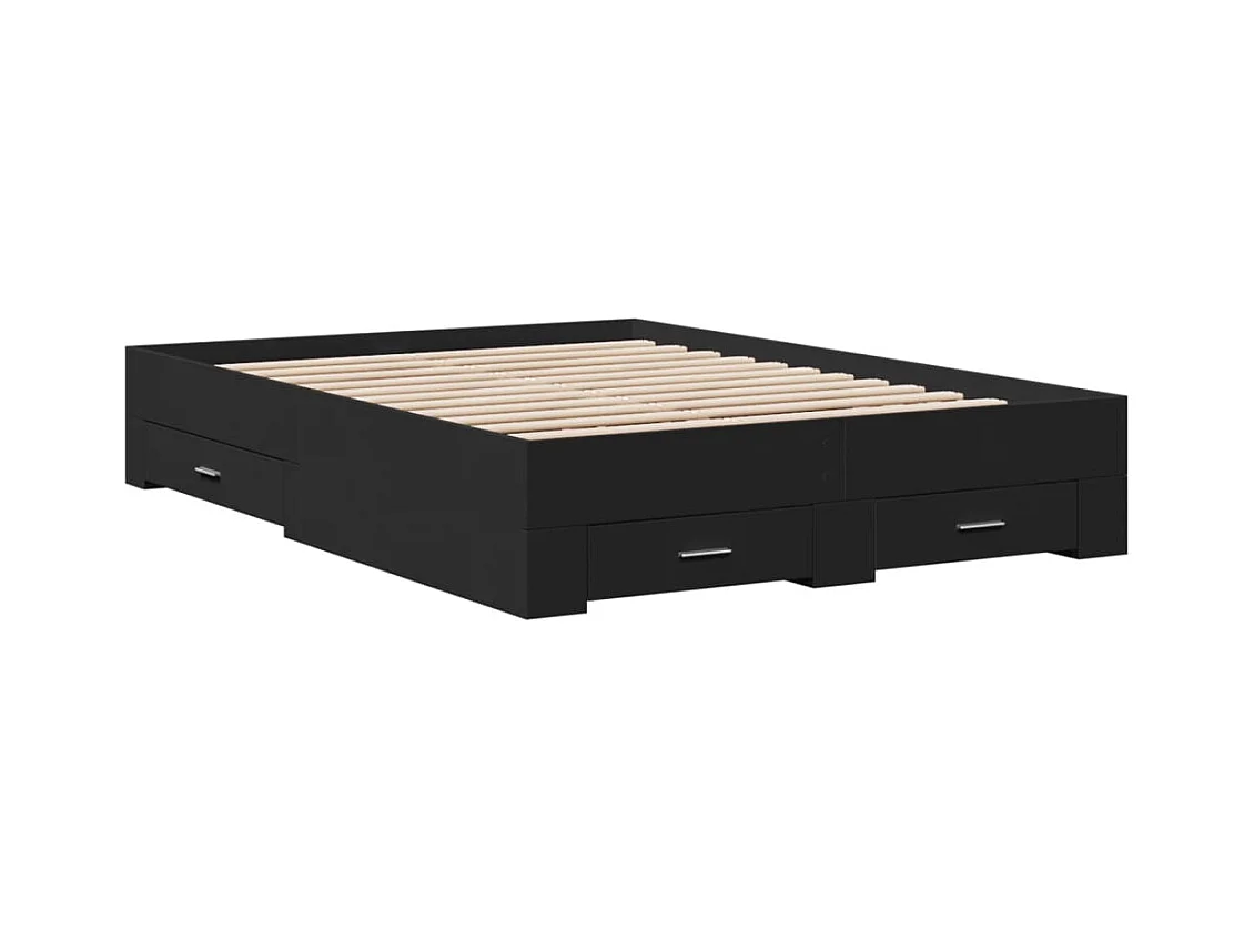 Cadre de lit et tiroirs noir 120x190 bois d'ingénierie