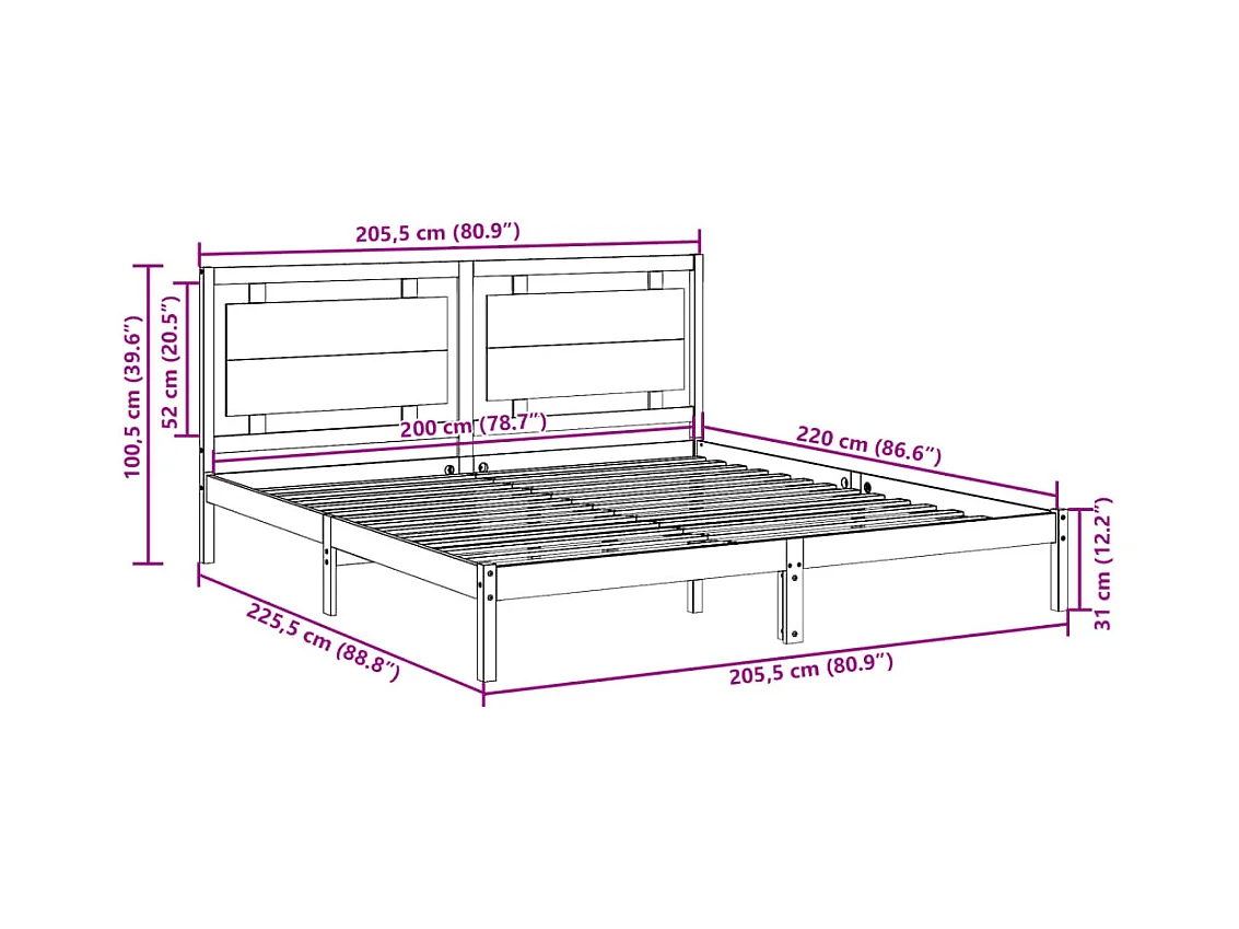 Cadre de lit extra long sans matelas 200x220 cm bois massif