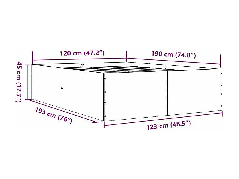 Cadre de lit gris béton 120x190 bois d'ingénierie