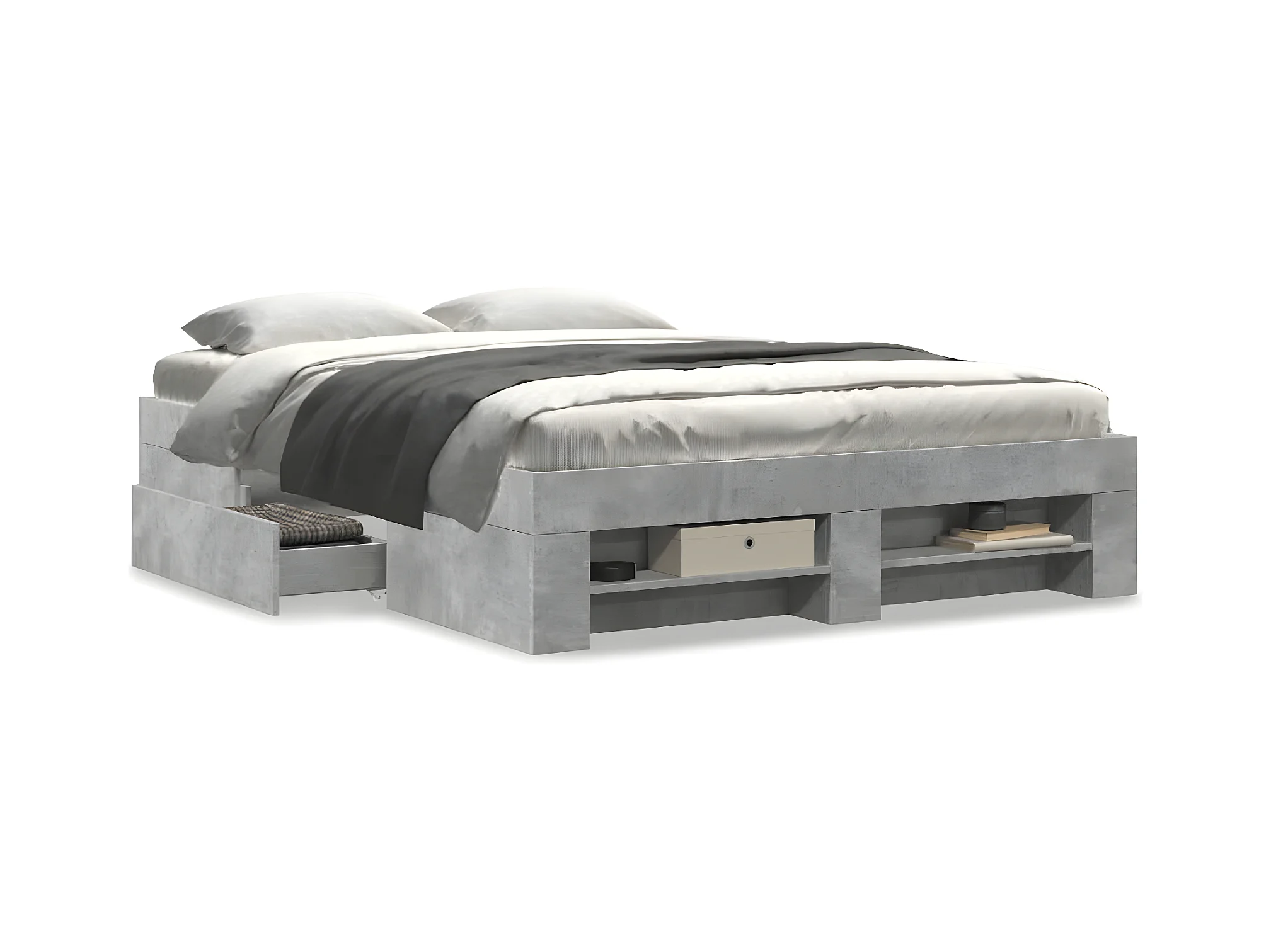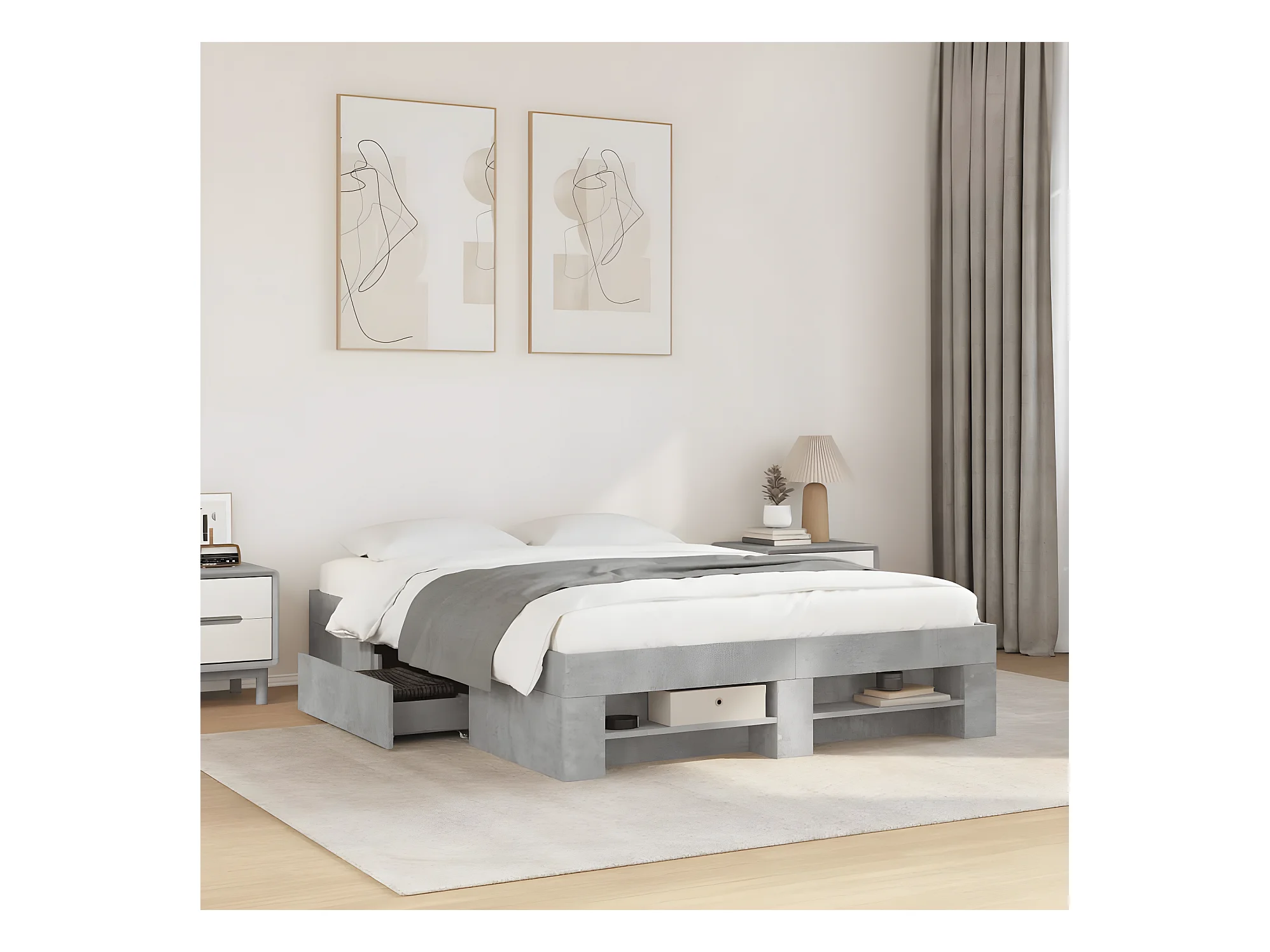 Cadre de lit gris béton 140x190 cm bois d'ingénierie