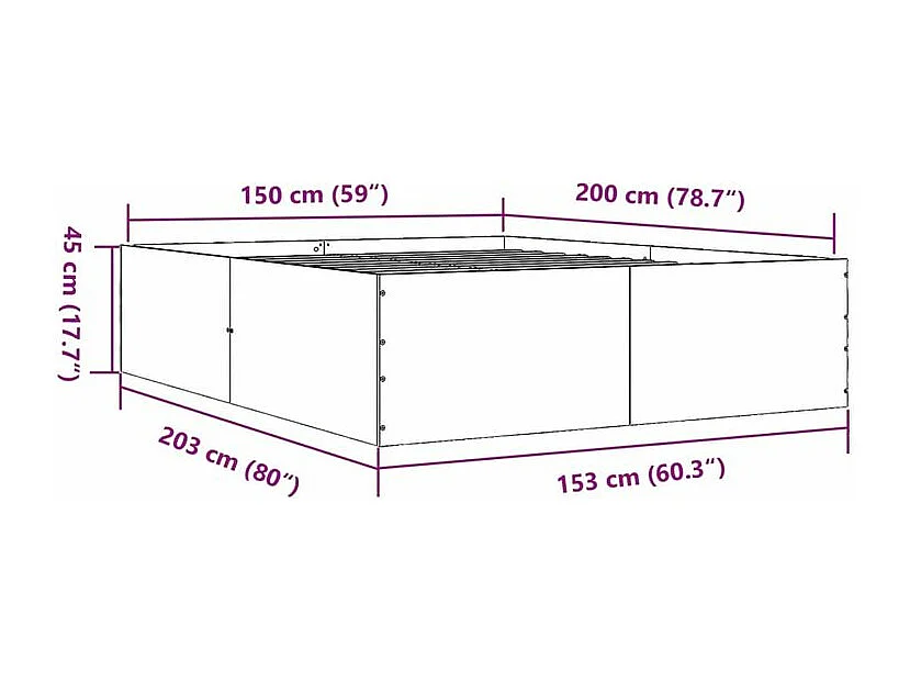 Cadre de lit gris béton 150x200 bois d'ingénierie