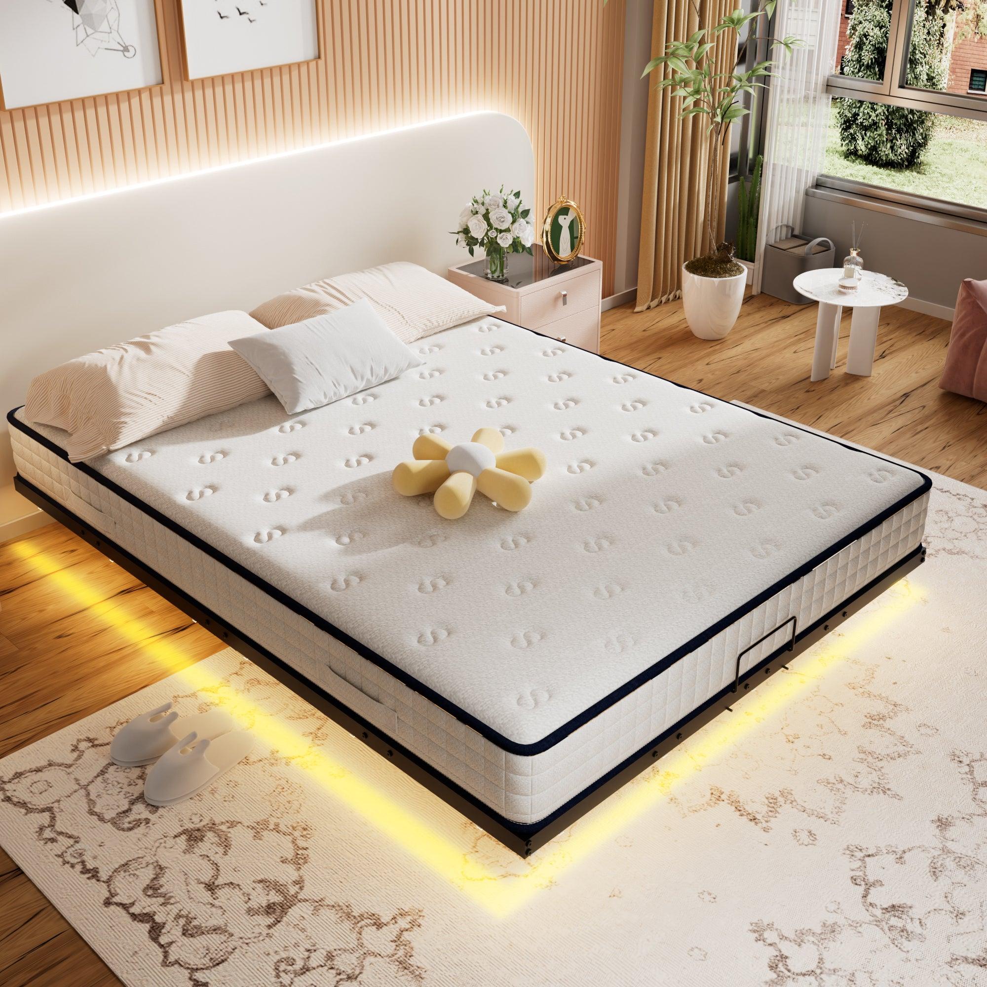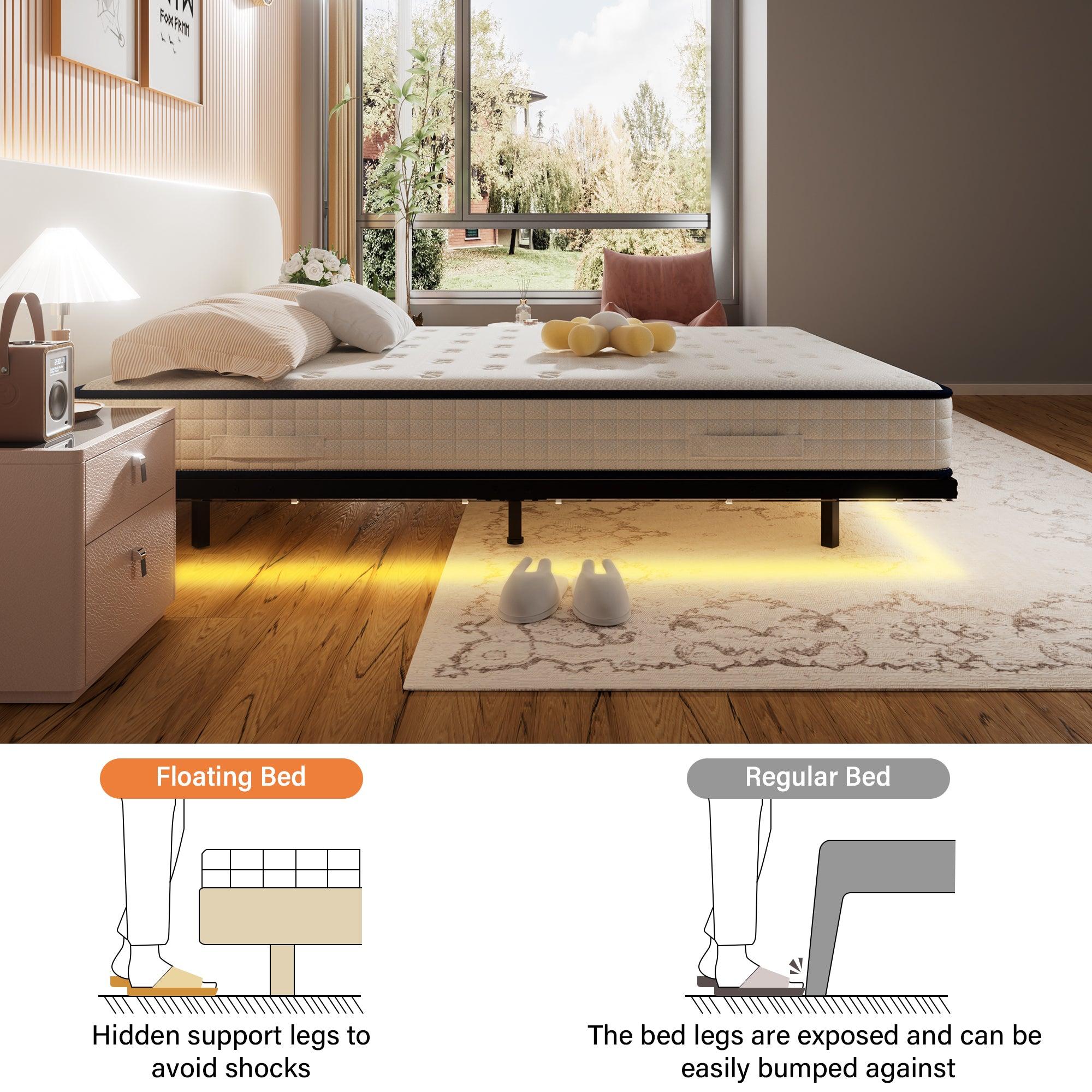 Cadre de lit LED en métal 140x190 cm, hauteur 20 cm, cadre de lit flottant, pieds dissimulés, noir