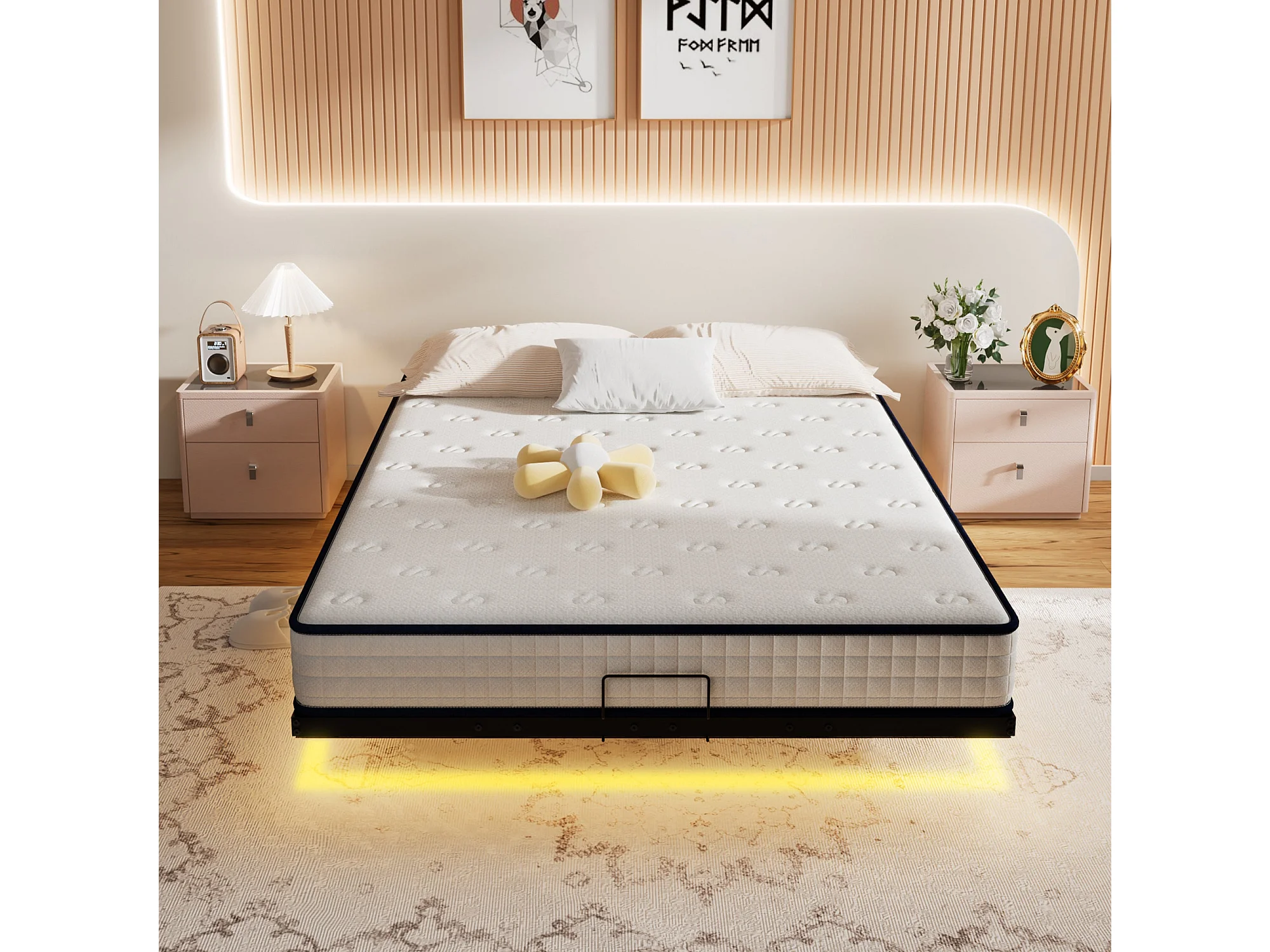 LED cadre de lit en métal, 160x200 cm, hauteur 20 cm, cadre flottant