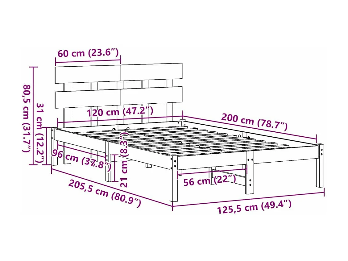 Cadre de lit Marron 120 x 200 cm Bois de pin massif