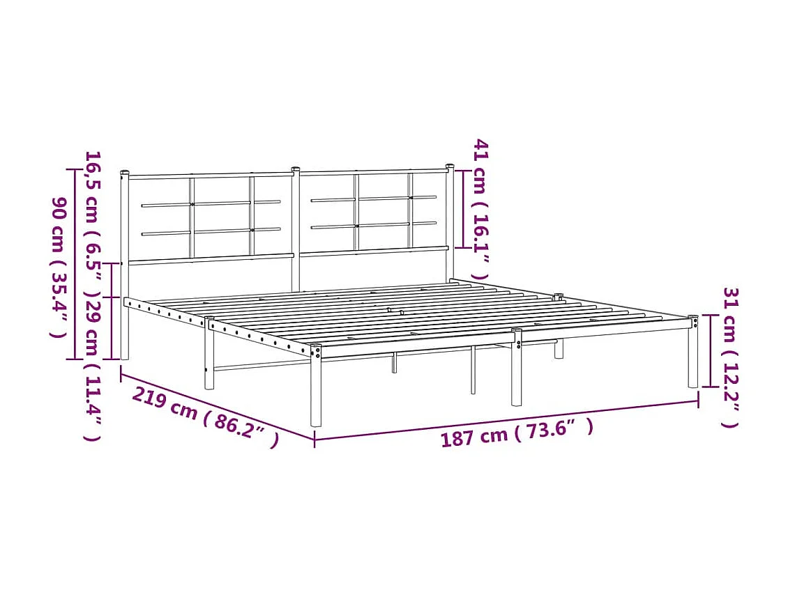 Cadre de lit métal avec tête de lit blanc 183x213