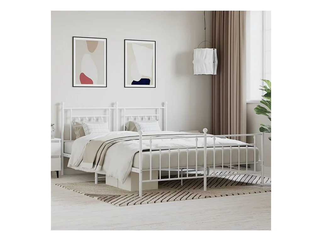 Cadre de lit métal avec tête de lit-pied de lit blanc 183x213