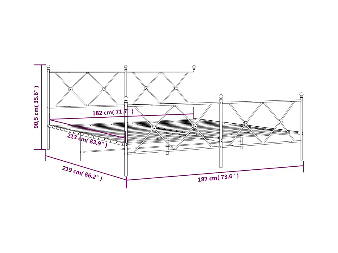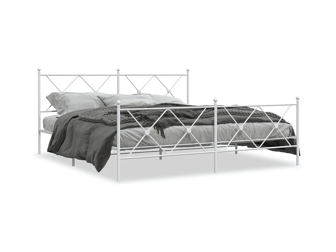 Cadre de lit métal avec tête de lit-pied de lit blanc 183x213