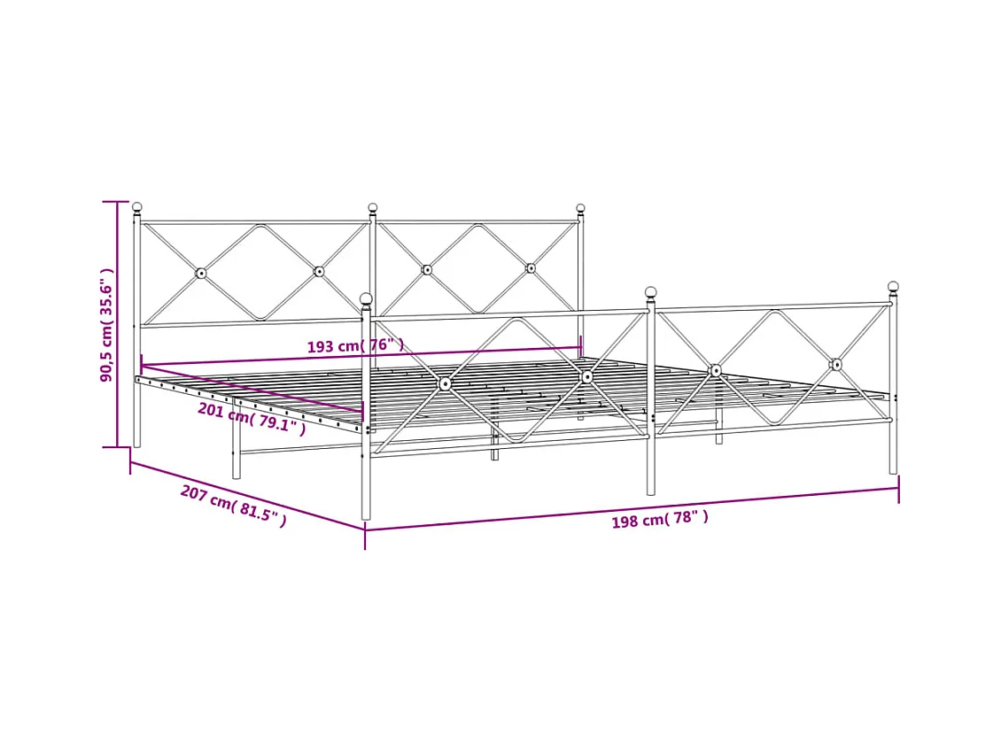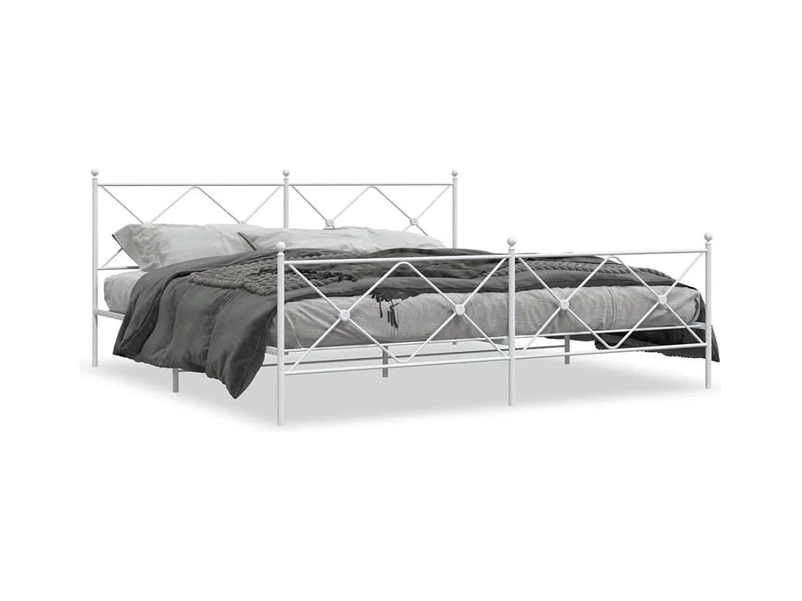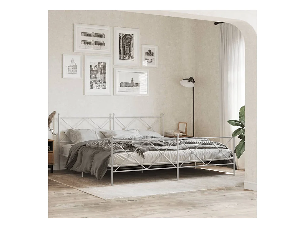 Cadre de lit métal avec tête de lit-pied de lit blanc 193x203